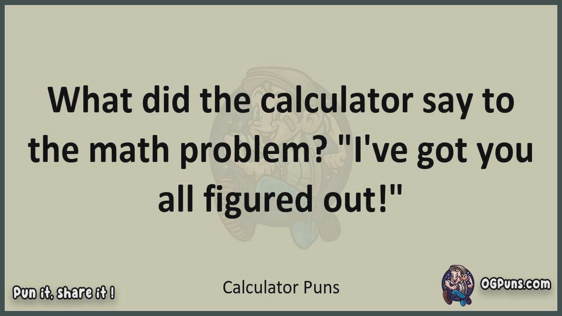 Delve into the delightful world of Calculator Puns ! Here, you'll find an entertaining mix of jokes, puns, quips, and wordplay. Each piece is crafted to offer a quick escape into humor, perfect for a light-hearted moment in any day. Whether you're seeking a chuckle or a clever twist on familiar themes, this collection promises to deliver smiles and laughter. Embrace the lighter side of life with humor that's both witty and refreshing."
