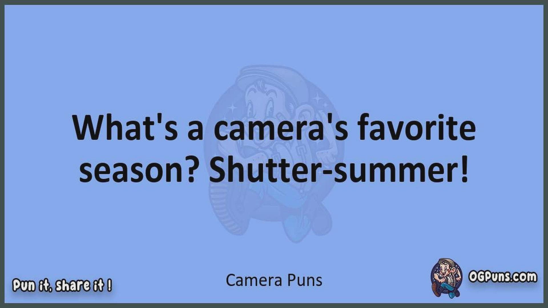 Delve into the delightful world of Camera Puns ! Here, you'll find an entertaining mix of jokes, puns, quips, and wordplay. Each piece is crafted to offer a quick escape into humor, perfect for a light-hearted moment in any day. Whether you're seeking a chuckle or a clever twist on familiar themes, this collection promises to deliver smiles and laughter. Embrace the lighter side of life with humor that's both witty and refreshing."