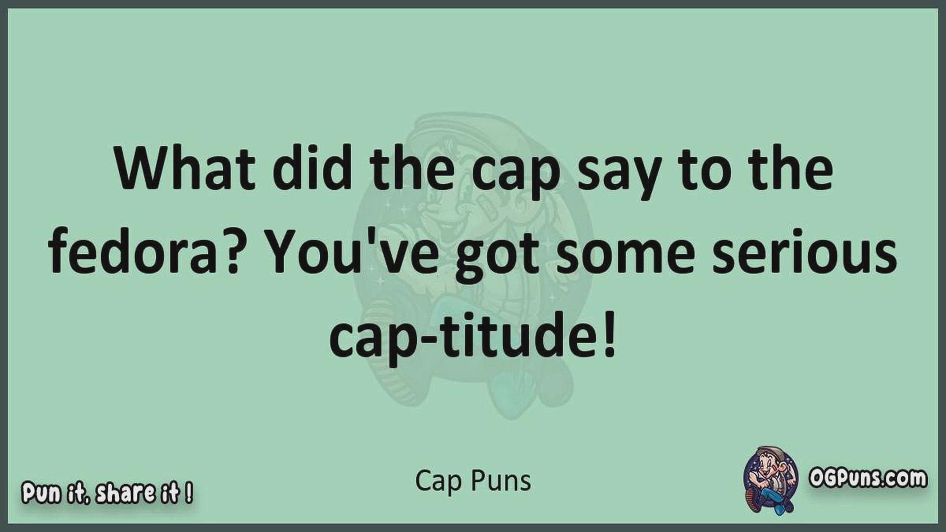 Delve into the delightful world of Cap Puns ! Here, you'll find an entertaining mix of jokes, puns, quips, and wordplay. Each piece is crafted to offer a quick escape into humor, perfect for a light-hearted moment in any day. Whether you're seeking a chuckle or a clever twist on familiar themes, this collection promises to deliver smiles and laughter. Embrace the lighter side of life with humor that's both witty and refreshing."