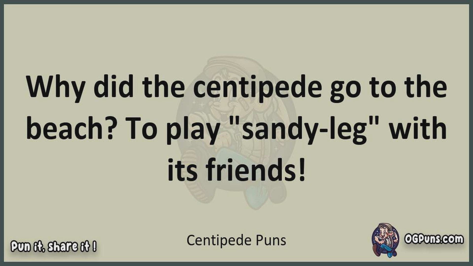 Delve into the delightful world of Centipede Puns ! Here, you'll find an entertaining mix of jokes, puns, quips, and wordplay. Each piece is crafted to offer a quick escape into humor, perfect for a light-hearted moment in any day. Whether you're seeking a chuckle or a clever twist on familiar themes, this collection promises to deliver smiles and laughter. Embrace the lighter side of life with humor that's both witty and refreshing."
