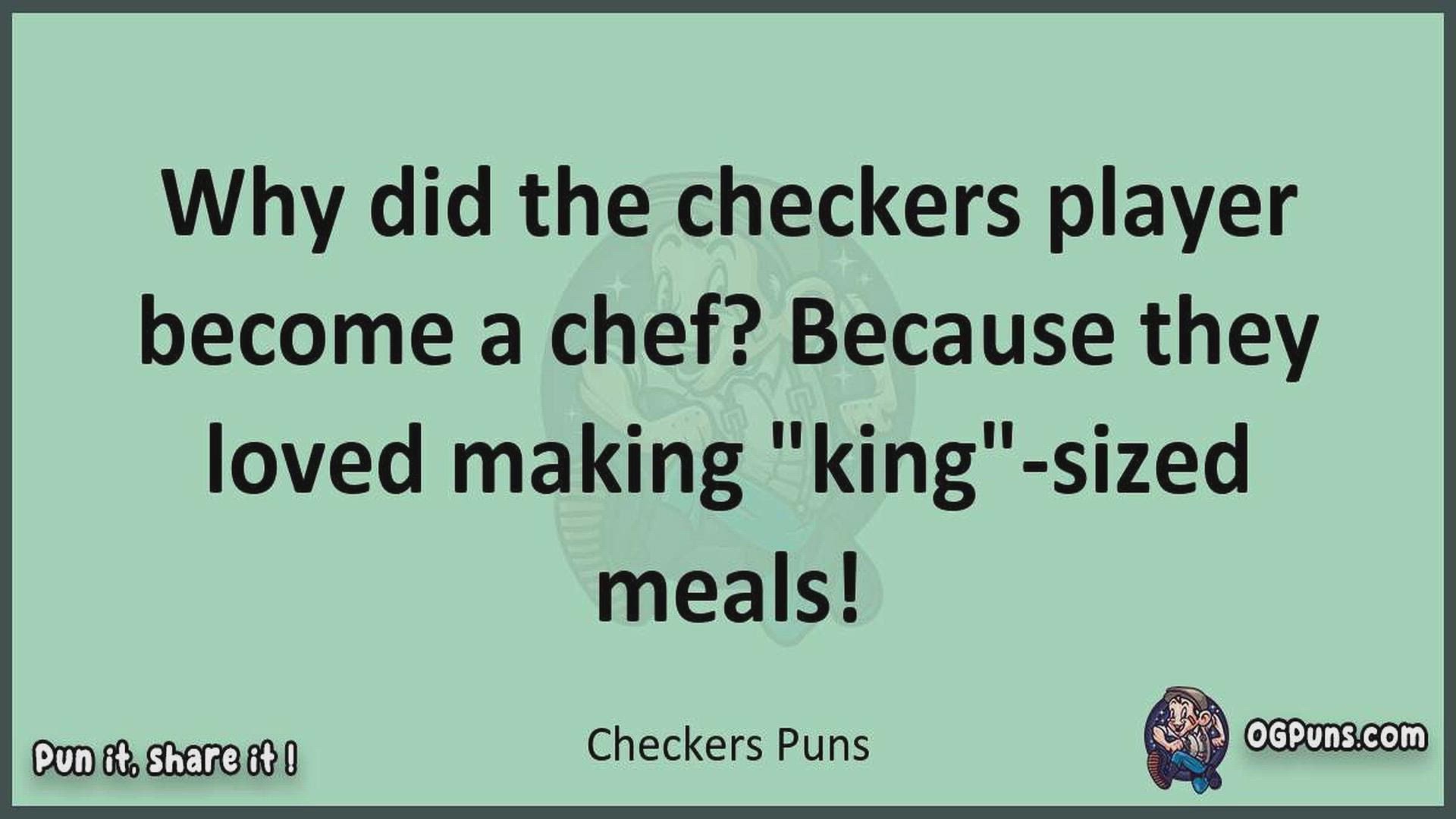 Delve into the delightful world of Checkers Puns ! Here, you'll find an entertaining mix of jokes, puns, quips, and wordplay. Each piece is crafted to offer a quick escape into humor, perfect for a light-hearted moment in any day. Whether you're seeking a chuckle or a clever twist on familiar themes, this collection promises to deliver smiles and laughter. Embrace the lighter side of life with humor that's both witty and refreshing."