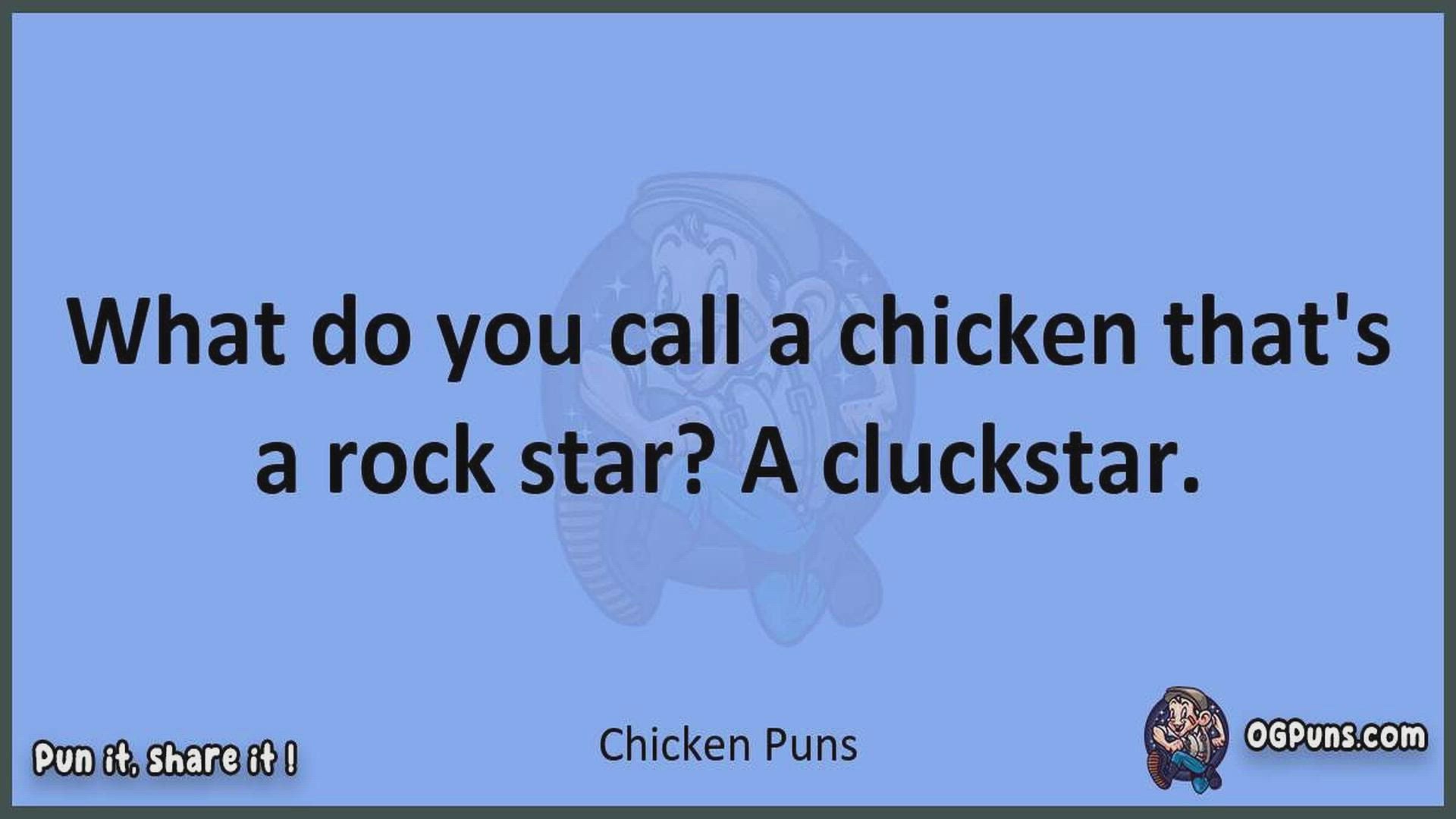 Delve into the delightful world of Chicken Puns ! Here, you'll find an entertaining mix of jokes, puns, quips, and wordplay. Each piece is crafted to offer a quick escape into humor, perfect for a light-hearted moment in any day. Whether you're seeking a chuckle or a clever twist on familiar themes, this collection promises to deliver smiles and laughter. Embrace the lighter side of life with humor that's both witty and refreshing."