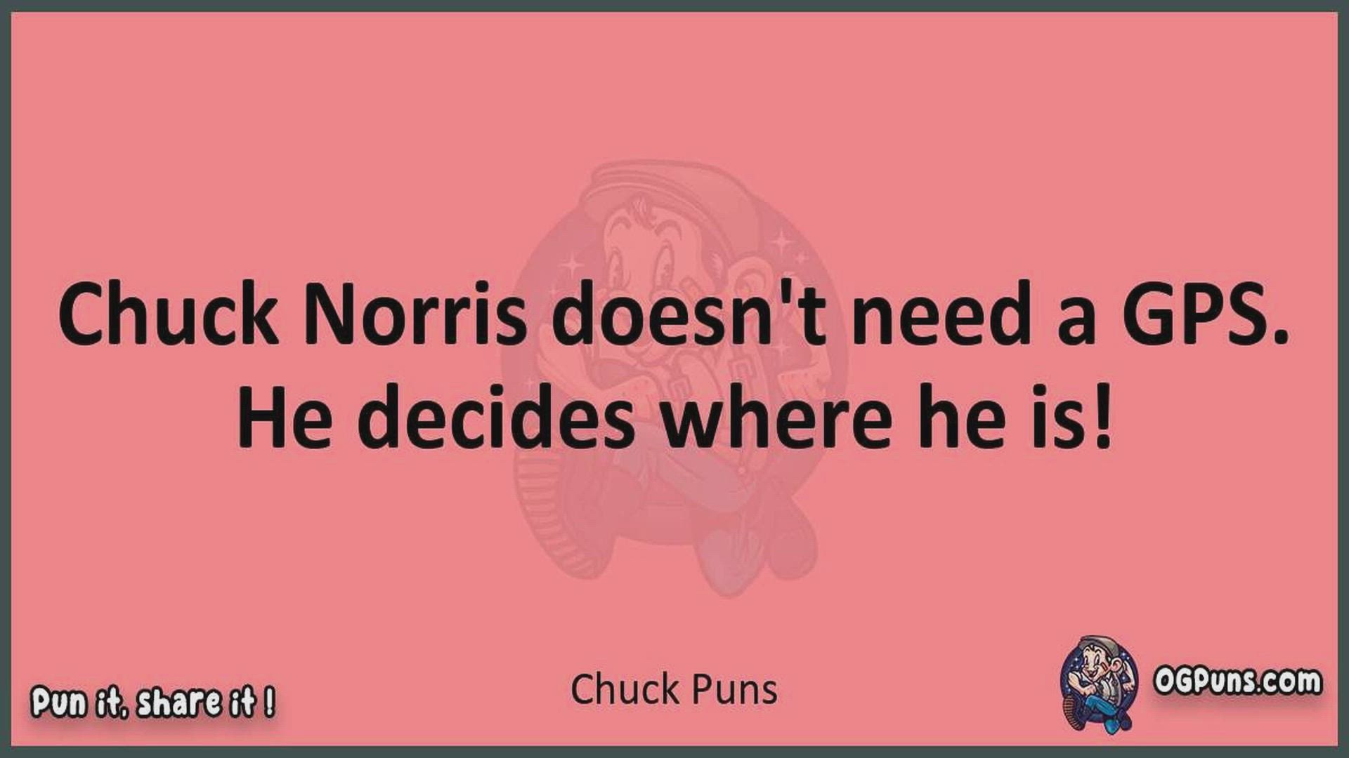Delve into the delightful world of Chuck Puns ! Here, you'll find an entertaining mix of jokes, puns, quips, and wordplay. Each piece is crafted to offer a quick escape into humor, perfect for a light-hearted moment in any day. Whether you're seeking a chuckle or a clever twist on familiar themes, this collection promises to deliver smiles and laughter. Embrace the lighter side of life with humor that's both witty and refreshing."