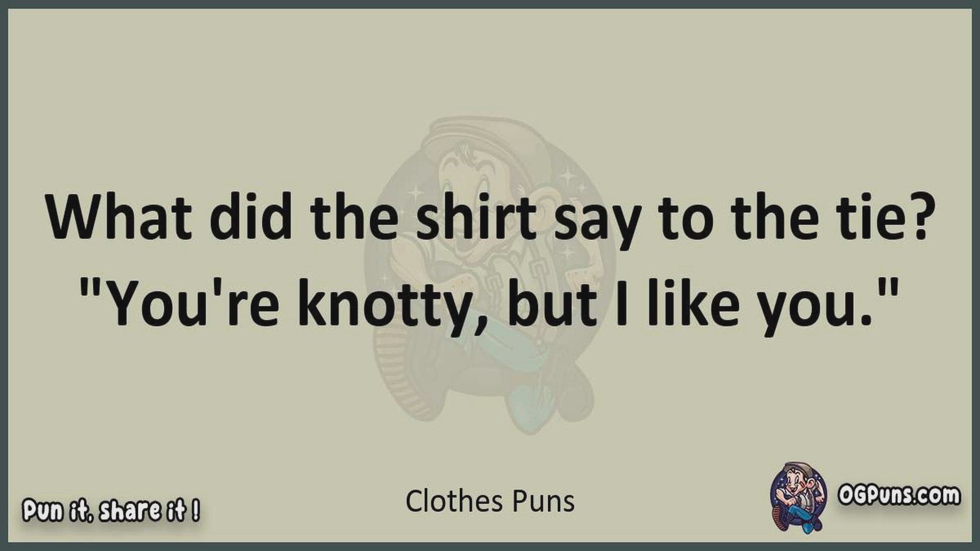 Delve into the delightful world of Clothes Puns ! Here, you'll find an entertaining mix of jokes, puns, quips, and wordplay. Each piece is crafted to offer a quick escape into humor, perfect for a light-hearted moment in any day. Whether you're seeking a chuckle or a clever twist on familiar themes, this collection promises to deliver smiles and laughter. Embrace the lighter side of life with humor that's both witty and refreshing."