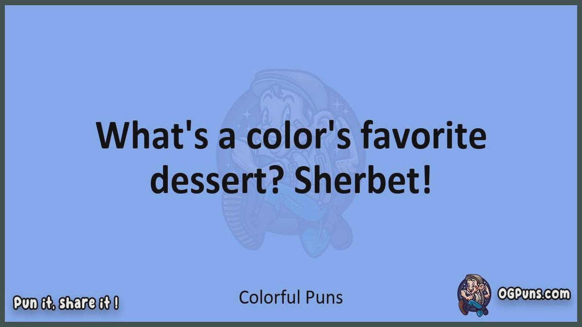 Delve into the delightful world of Colorful Puns ! Here, you'll find an entertaining mix of jokes, puns, quips, and wordplay. Each piece is crafted to offer a quick escape into humor, perfect for a light-hearted moment in any day. Whether you're seeking a chuckle or a clever twist on familiar themes, this collection promises to deliver smiles and laughter. Embrace the lighter side of life with humor that's both witty and refreshing."
