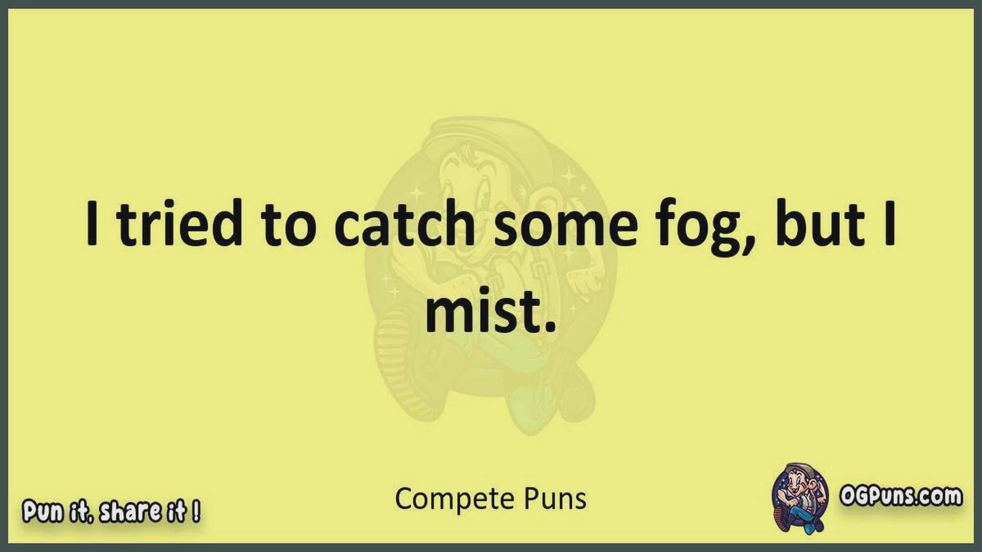 Delve into the delightful world of Compete Puns ! Here, you'll find an entertaining mix of jokes, puns, quips, and wordplay. Each piece is crafted to offer a quick escape into humor, perfect for a light-hearted moment in any day. Whether you're seeking a chuckle or a clever twist on familiar themes, this collection promises to deliver smiles and laughter. Embrace the lighter side of life with humor that's both witty and refreshing."