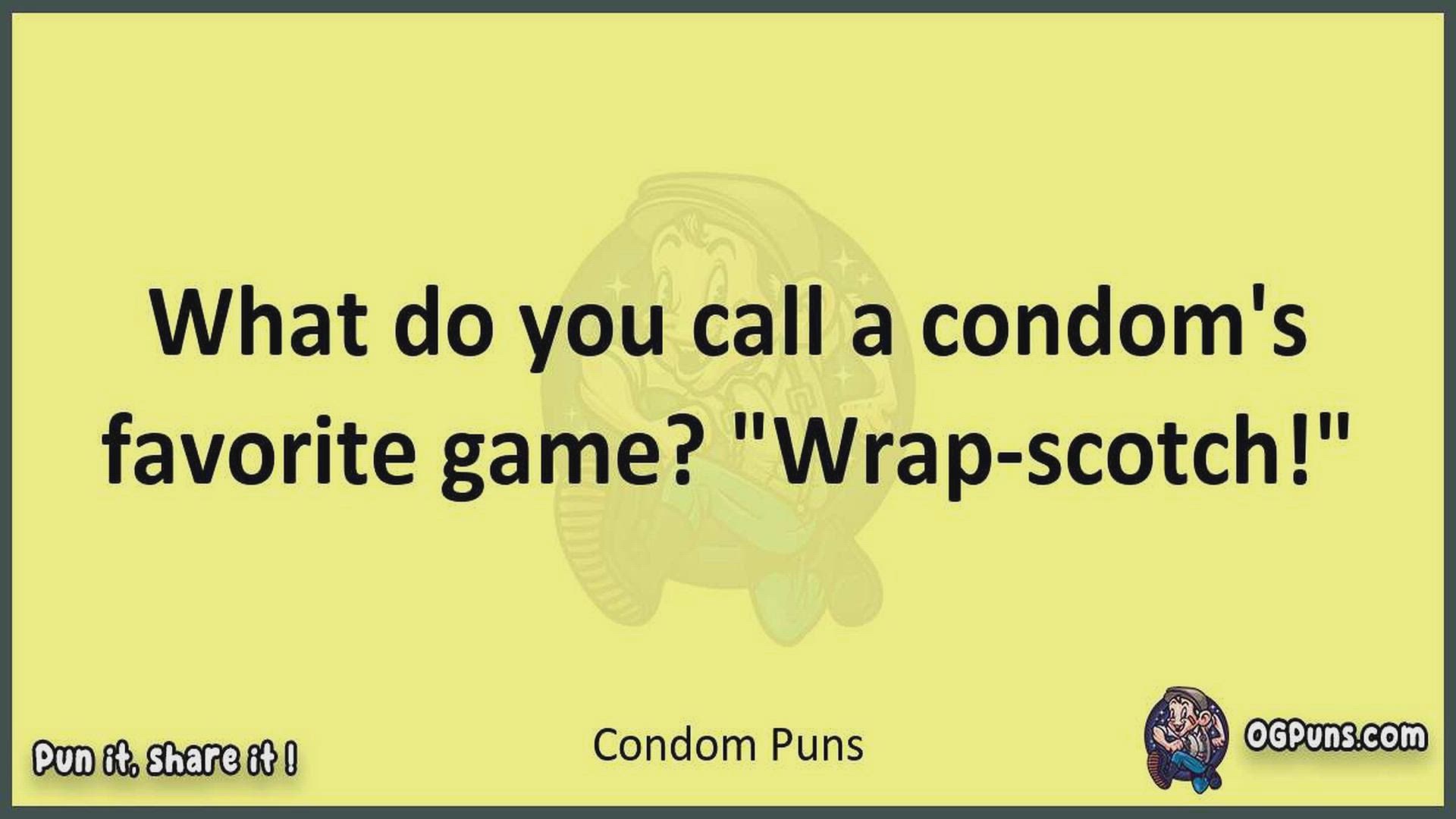 Delve into the delightful world of Condom Puns ! Here, you'll find an entertaining mix of jokes, puns, quips, and wordplay. Each piece is crafted to offer a quick escape into humor, perfect for a light-hearted moment in any day. Whether you're seeking a chuckle or a clever twist on familiar themes, this collection promises to deliver smiles and laughter. Embrace the lighter side of life with humor that's both witty and refreshing."