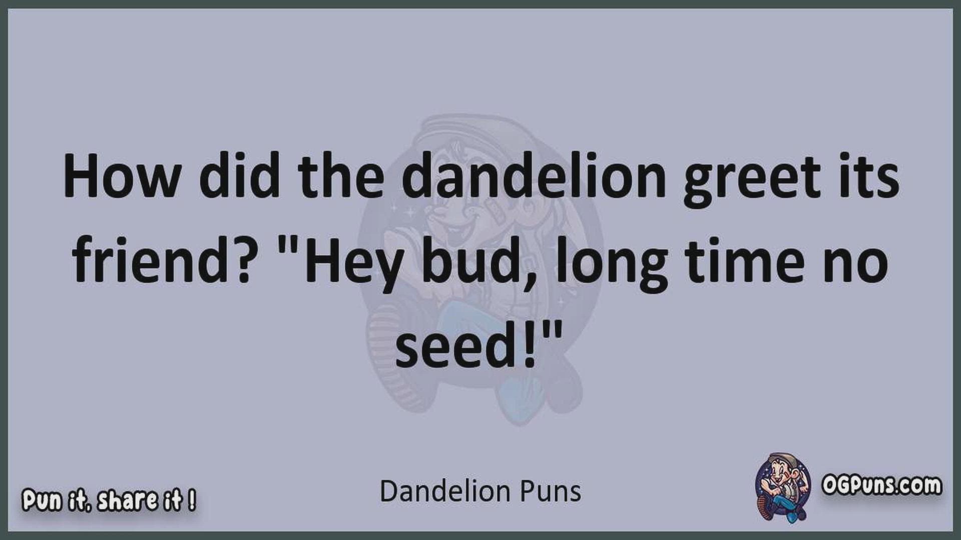 Delve into the delightful world of Dandelion Puns ! Here, you'll find an entertaining mix of jokes, puns, quips, and wordplay. Each piece is crafted to offer a quick escape into humor, perfect for a light-hearted moment in any day. Whether you're seeking a chuckle or a clever twist on familiar themes, this collection promises to deliver smiles and laughter. Embrace the lighter side of life with humor that's both witty and refreshing."