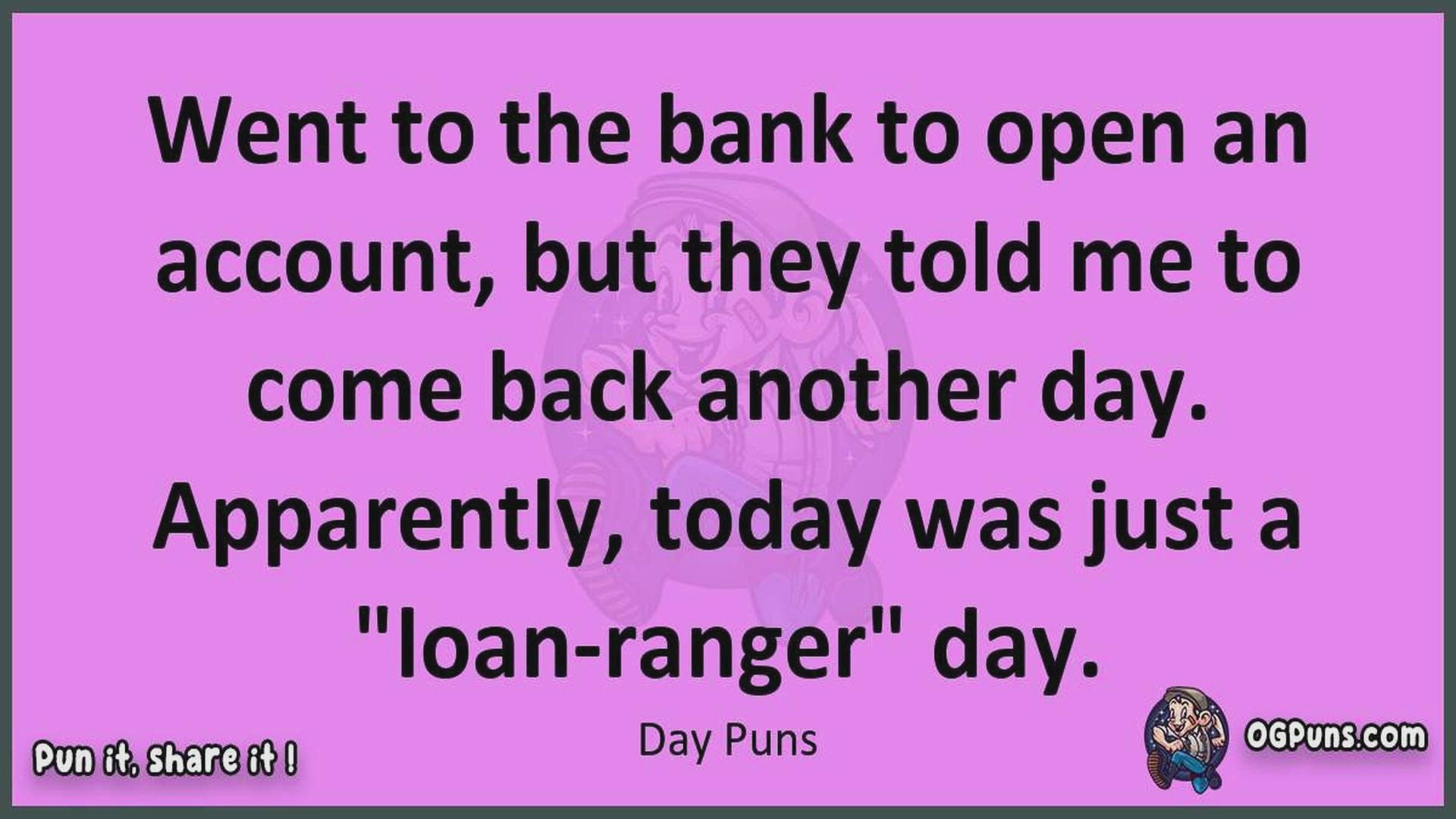 Delve into the delightful world of Day Puns ! Here, you'll find an entertaining mix of jokes, puns, quips, and wordplay. Each piece is crafted to offer a quick escape into humor, perfect for a light-hearted moment in any day. Whether you're seeking a chuckle or a clever twist on familiar themes, this collection promises to deliver smiles and laughter. Embrace the lighter side of life with humor that's both witty and refreshing."
