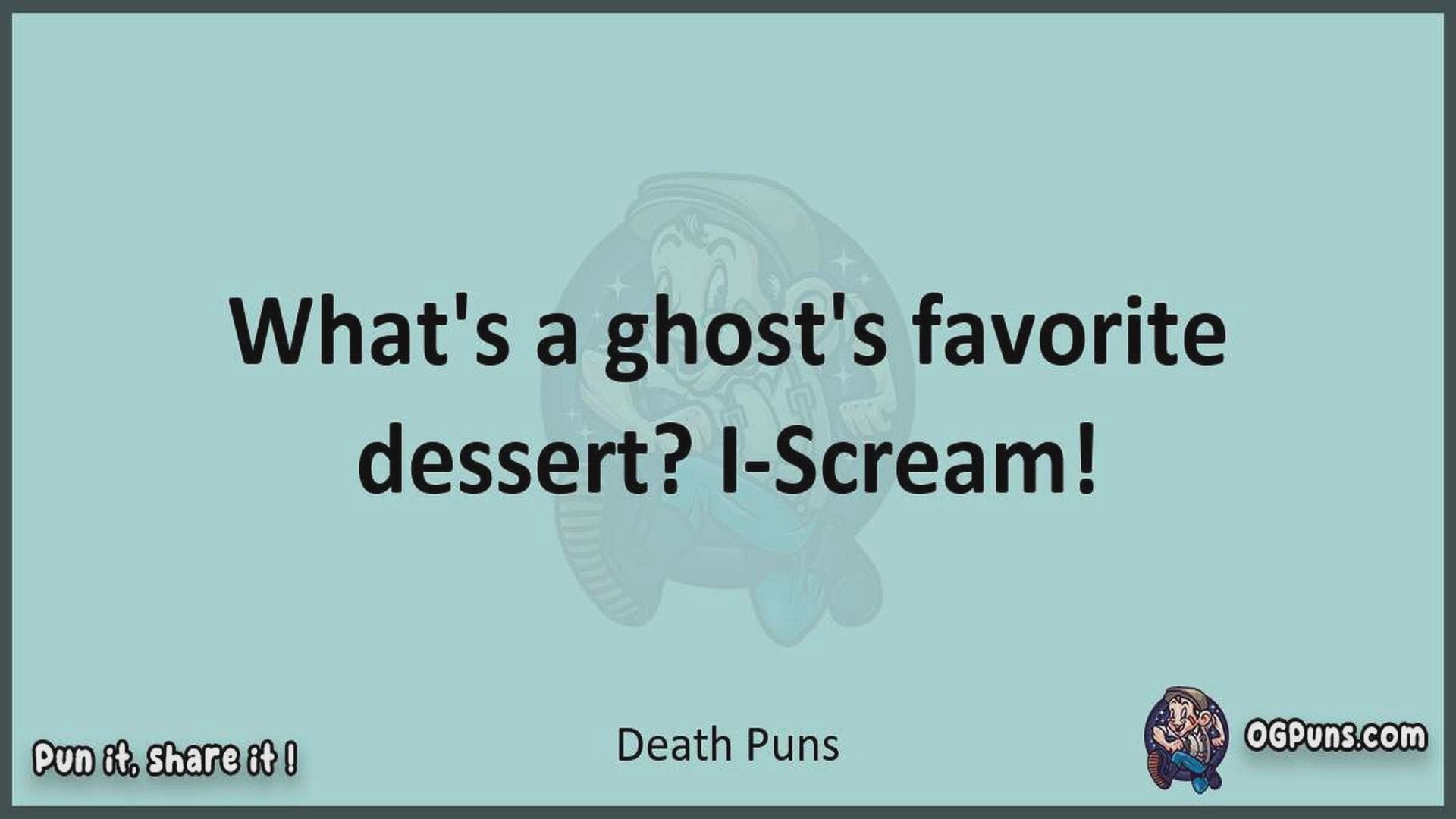 Delve into the delightful world of Death Puns ! Here, you'll find an entertaining mix of jokes, puns, quips, and wordplay. Each piece is crafted to offer a quick escape into humor, perfect for a light-hearted moment in any day. Whether you're seeking a chuckle or a clever twist on familiar themes, this collection promises to deliver smiles and laughter. Embrace the lighter side of life with humor that's both witty and refreshing."