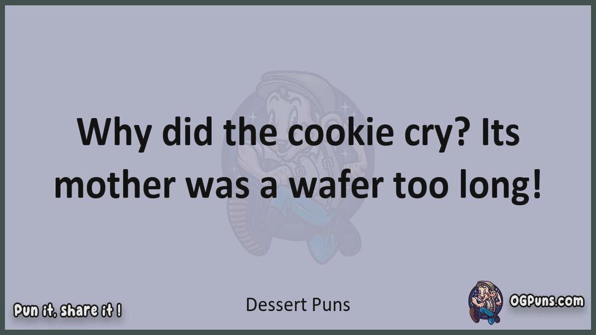 Delve into the delightful world of Dessert Puns ! Here, you'll find an entertaining mix of jokes, puns, quips, and wordplay. Each piece is crafted to offer a quick escape into humor, perfect for a light-hearted moment in any day. Whether you're seeking a chuckle or a clever twist on familiar themes, this collection promises to deliver smiles and laughter. Embrace the lighter side of life with humor that's both witty and refreshing."