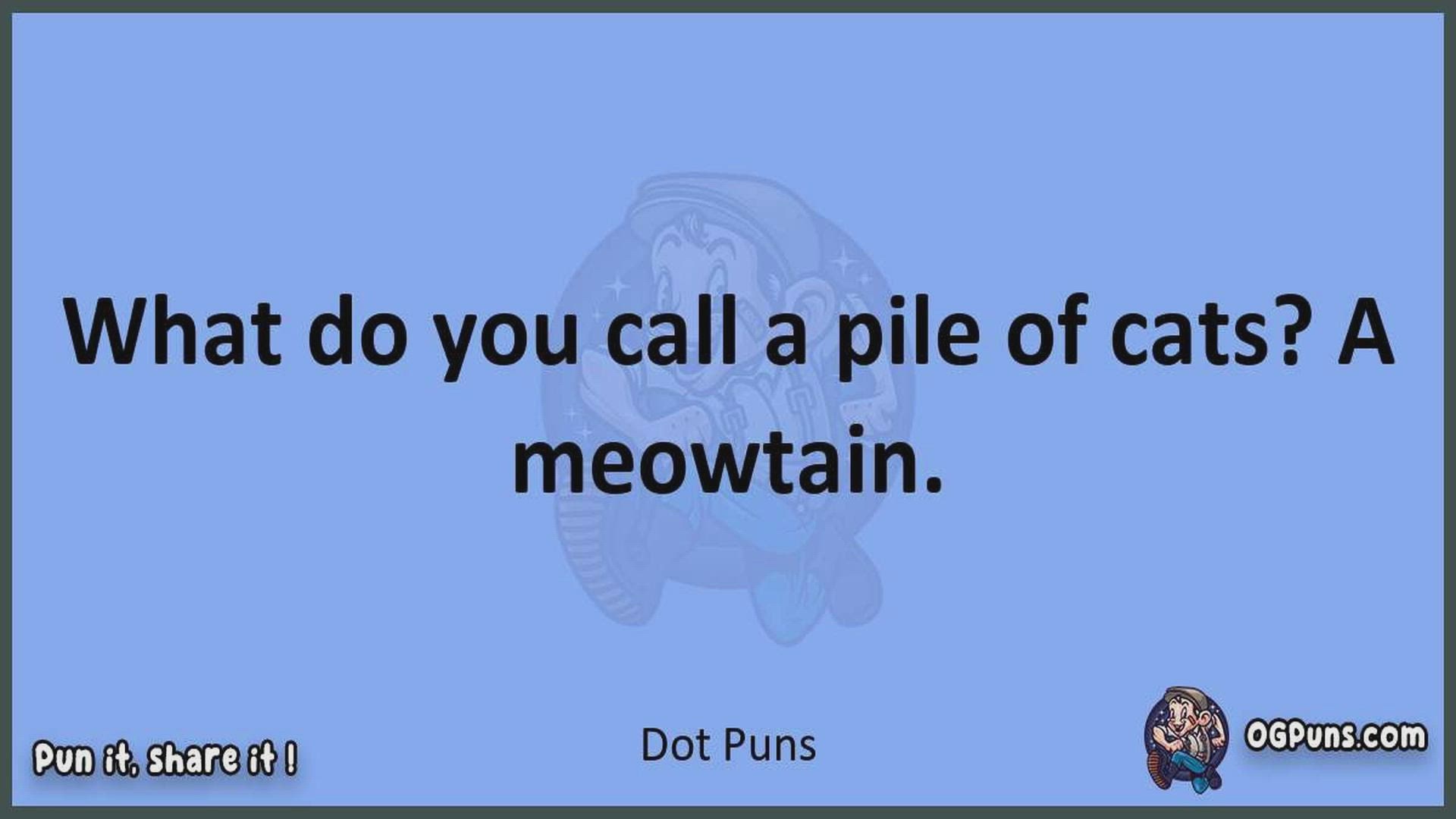 Delve into the delightful world of Dot Puns ! Here, you'll find an entertaining mix of jokes, puns, quips, and wordplay. Each piece is crafted to offer a quick escape into humor, perfect for a light-hearted moment in any day. Whether you're seeking a chuckle or a clever twist on familiar themes, this collection promises to deliver smiles and laughter. Embrace the lighter side of life with humor that's both witty and refreshing."