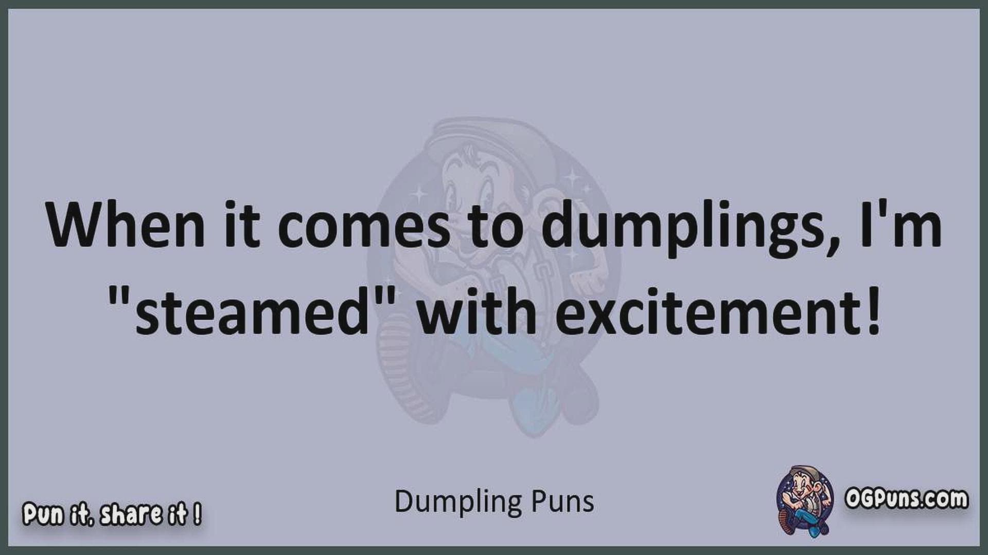 Delve into the delightful world of Dumpling Puns ! Here, you'll find an entertaining mix of jokes, puns, quips, and wordplay. Each piece is crafted to offer a quick escape into humor, perfect for a light-hearted moment in any day. Whether you're seeking a chuckle or a clever twist on familiar themes, this collection promises to deliver smiles and laughter. Embrace the lighter side of life with humor that's both witty and refreshing."