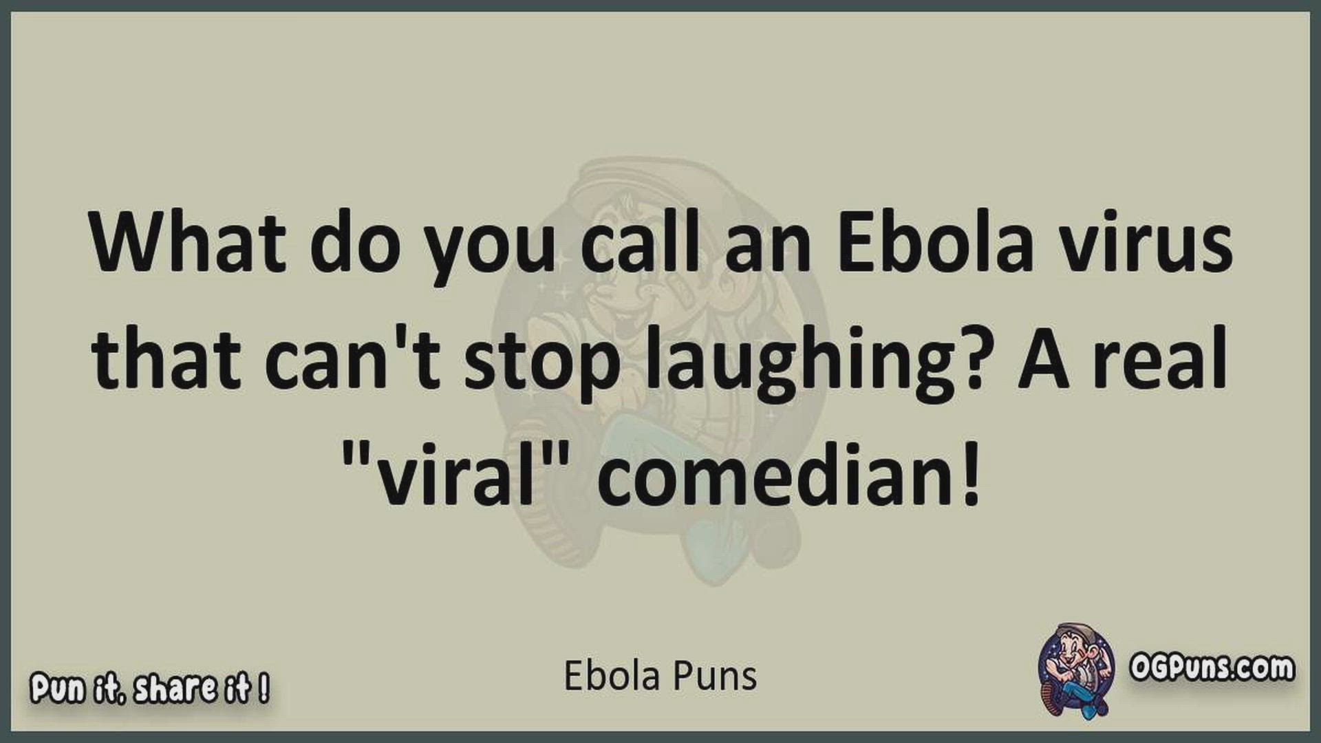 Delve into the delightful world of Ebola Puns ! Here, you'll find an entertaining mix of jokes, puns, quips, and wordplay. Each piece is crafted to offer a quick escape into humor, perfect for a light-hearted moment in any day. Whether you're seeking a chuckle or a clever twist on familiar themes, this collection promises to deliver smiles and laughter. Embrace the lighter side of life with humor that's both witty and refreshing."
