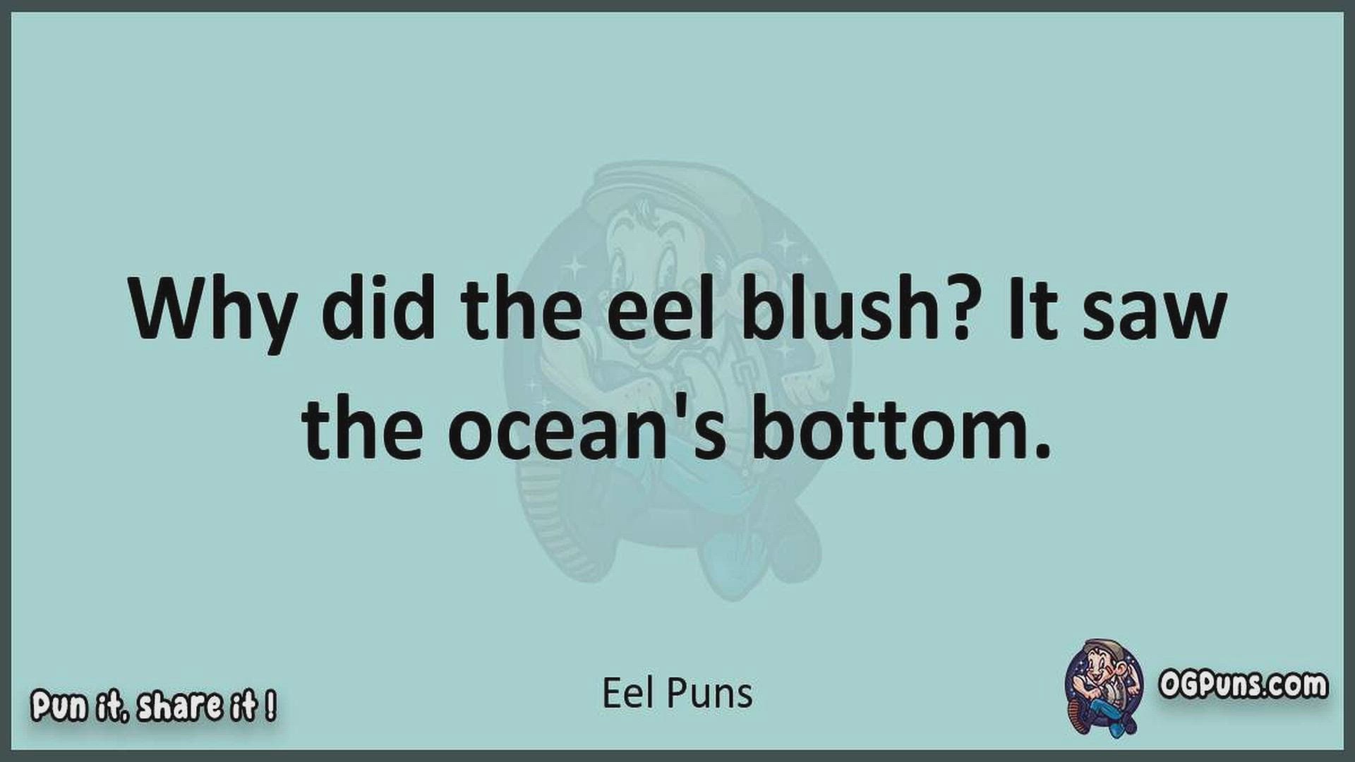 Delve into the delightful world of Eel Puns ! Here, you'll find an entertaining mix of jokes, puns, quips, and wordplay. Each piece is crafted to offer a quick escape into humor, perfect for a light-hearted moment in any day. Whether you're seeking a chuckle or a clever twist on familiar themes, this collection promises to deliver smiles and laughter. Embrace the lighter side of life with humor that's both witty and refreshing."
