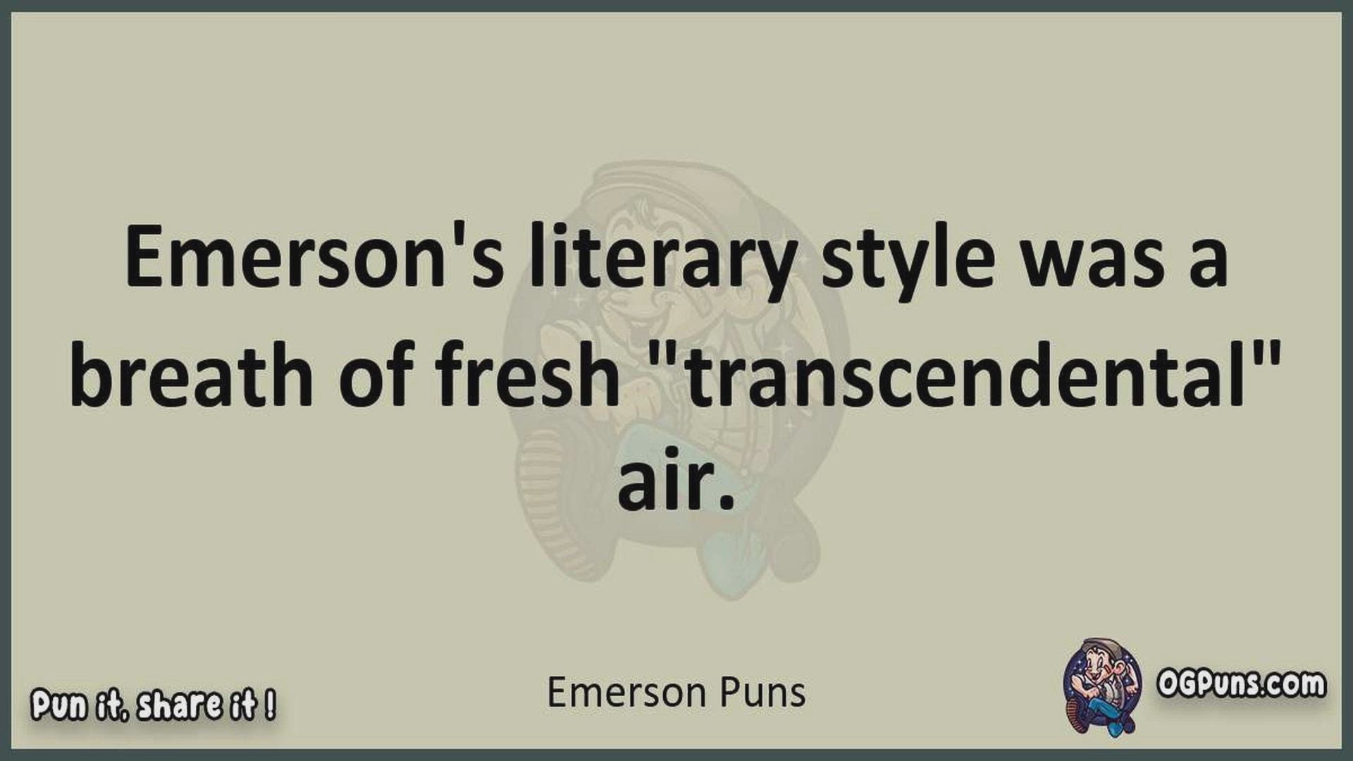Delve into the delightful world of Emerson Puns ! Here, you'll find an entertaining mix of jokes, puns, quips, and wordplay. Each piece is crafted to offer a quick escape into humor, perfect for a light-hearted moment in any day. Whether you're seeking a chuckle or a clever twist on familiar themes, this collection promises to deliver smiles and laughter. Embrace the lighter side of life with humor that's both witty and refreshing."