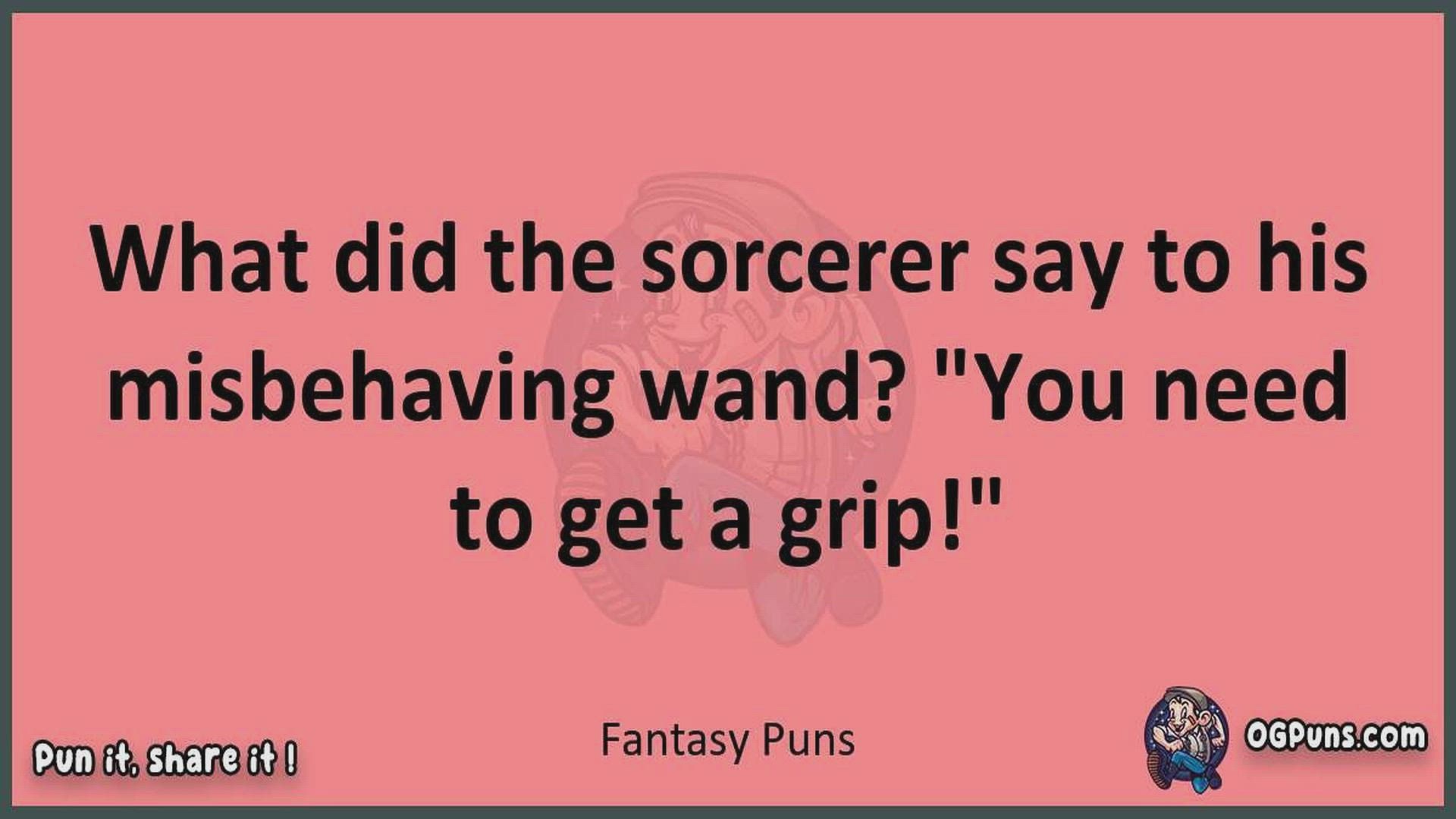 Delve into the delightful world of Fantasy Puns ! Here, you'll find an entertaining mix of jokes, puns, quips, and wordplay. Each piece is crafted to offer a quick escape into humor, perfect for a light-hearted moment in any day. Whether you're seeking a chuckle or a clever twist on familiar themes, this collection promises to deliver smiles and laughter. Embrace the lighter side of life with humor that's both witty and refreshing."