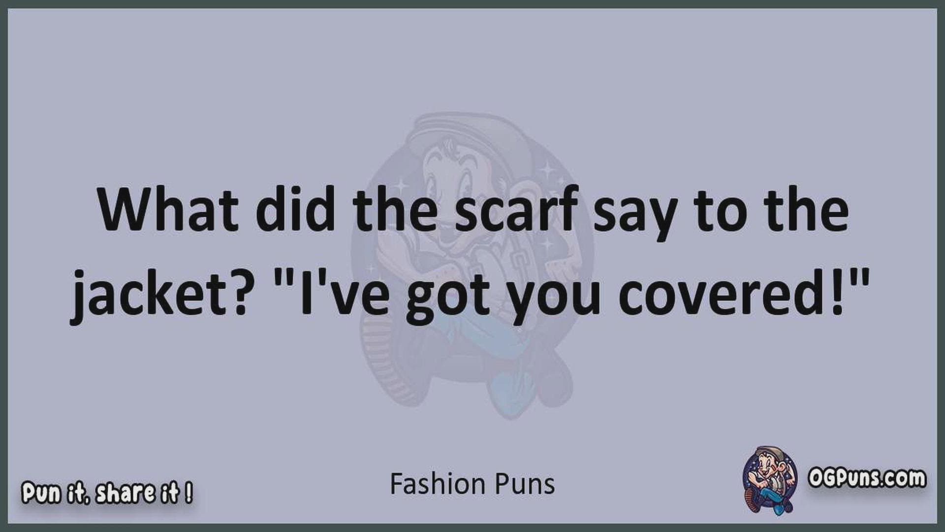 Delve into the delightful world of Fashion Puns ! Here, you'll find an entertaining mix of jokes, puns, quips, and wordplay. Each piece is crafted to offer a quick escape into humor, perfect for a light-hearted moment in any day. Whether you're seeking a chuckle or a clever twist on familiar themes, this collection promises to deliver smiles and laughter. Embrace the lighter side of life with humor that's both witty and refreshing."