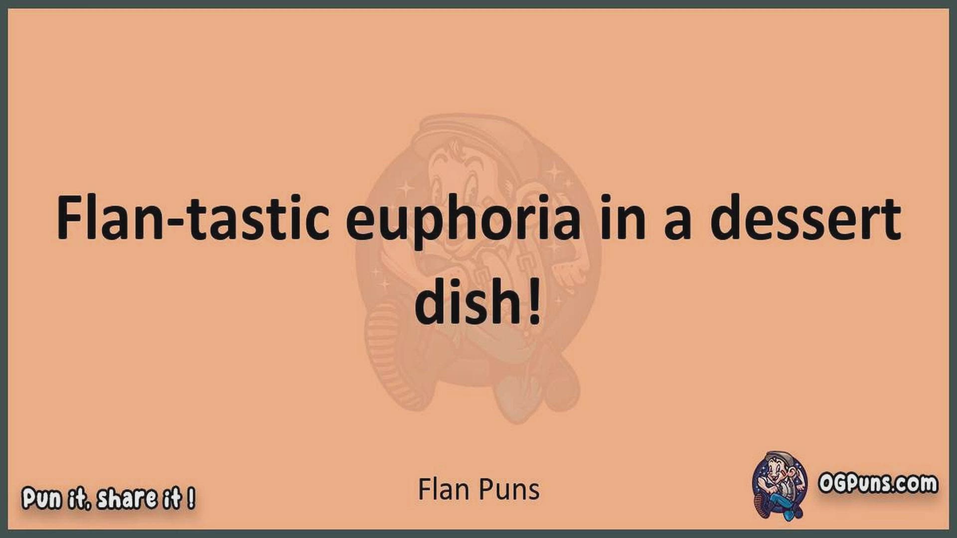 Delve into the delightful world of Flan Puns ! Here, you'll find an entertaining mix of jokes, puns, quips, and wordplay. Each piece is crafted to offer a quick escape into humor, perfect for a light-hearted moment in any day. Whether you're seeking a chuckle or a clever twist on familiar themes, this collection promises to deliver smiles and laughter. Embrace the lighter side of life with humor that's both witty and refreshing."