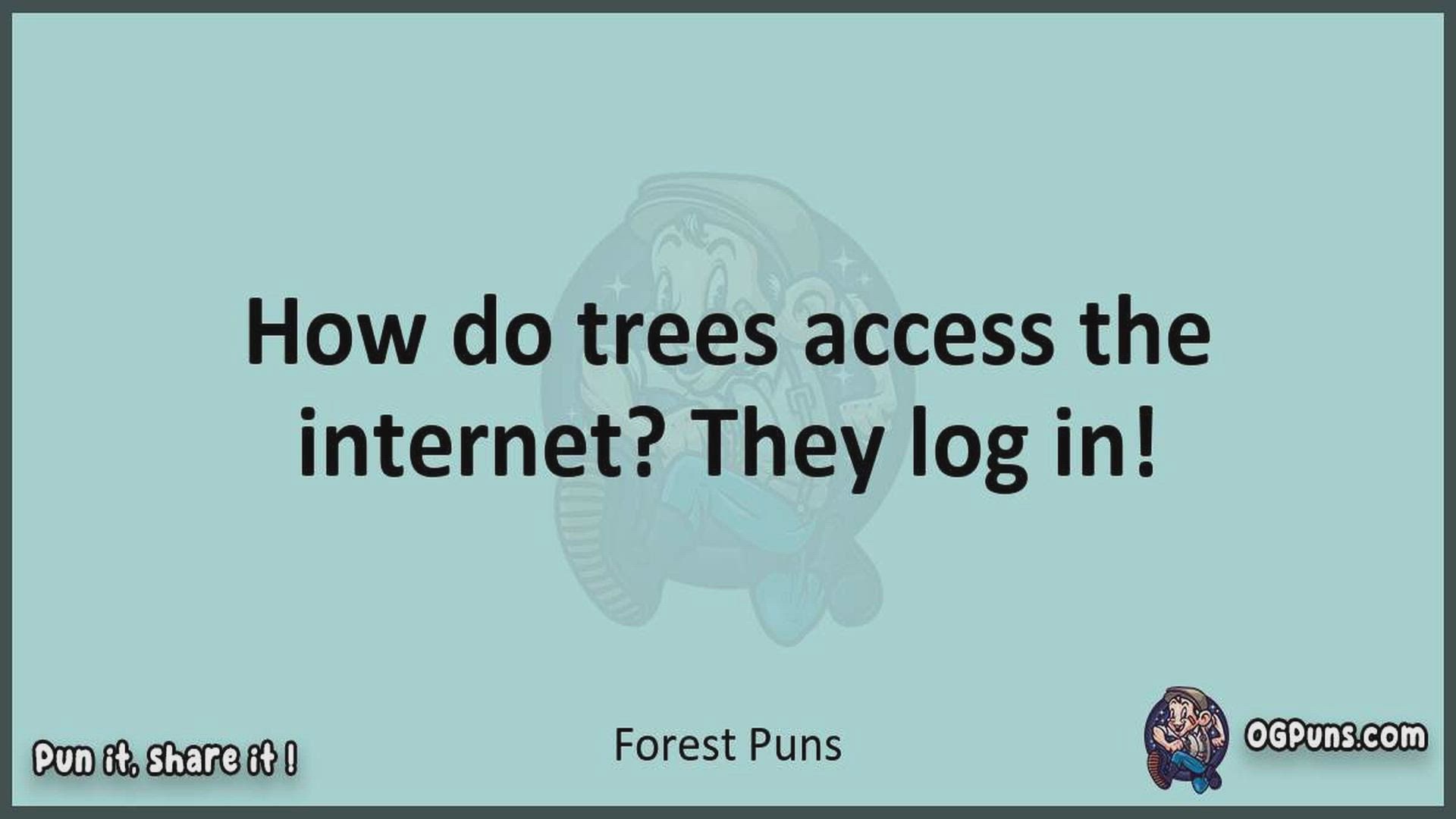Delve into the delightful world of Forest Puns ! Here, you'll find an entertaining mix of jokes, puns, quips, and wordplay. Each piece is crafted to offer a quick escape into humor, perfect for a light-hearted moment in any day. Whether you're seeking a chuckle or a clever twist on familiar themes, this collection promises to deliver smiles and laughter. Embrace the lighter side of life with humor that's both witty and refreshing."