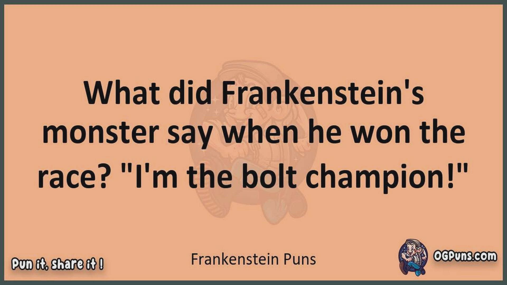Delve into the delightful world of Frankenstein Puns ! Here, you'll find an entertaining mix of jokes, puns, quips, and wordplay. Each piece is crafted to offer a quick escape into humor, perfect for a light-hearted moment in any day. Whether you're seeking a chuckle or a clever twist on familiar themes, this collection promises to deliver smiles and laughter. Embrace the lighter side of life with humor that's both witty and refreshing."