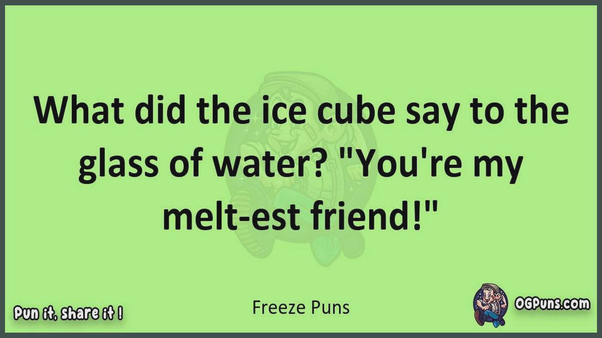 Delve into the delightful world of Freeze Puns ! Here, you'll find an entertaining mix of jokes, puns, quips, and wordplay. Each piece is crafted to offer a quick escape into humor, perfect for a light-hearted moment in any day. Whether you're seeking a chuckle or a clever twist on familiar themes, this collection promises to deliver smiles and laughter. Embrace the lighter side of life with humor that's both witty and refreshing."