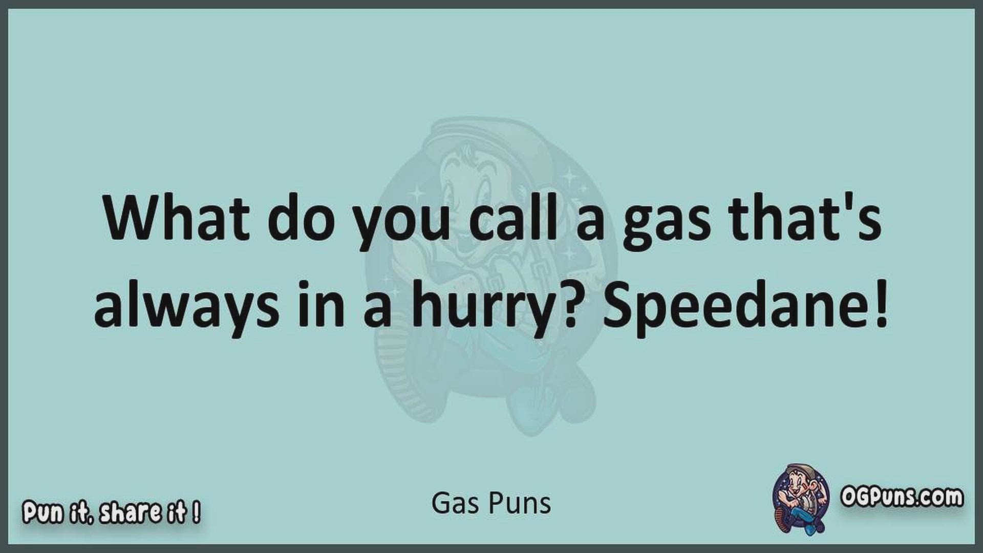 Delve into the delightful world of Gas Puns ! Here, you'll find an entertaining mix of jokes, puns, quips, and wordplay. Each piece is crafted to offer a quick escape into humor, perfect for a light-hearted moment in any day. Whether you're seeking a chuckle or a clever twist on familiar themes, this collection promises to deliver smiles and laughter. Embrace the lighter side of life with humor that's both witty and refreshing."