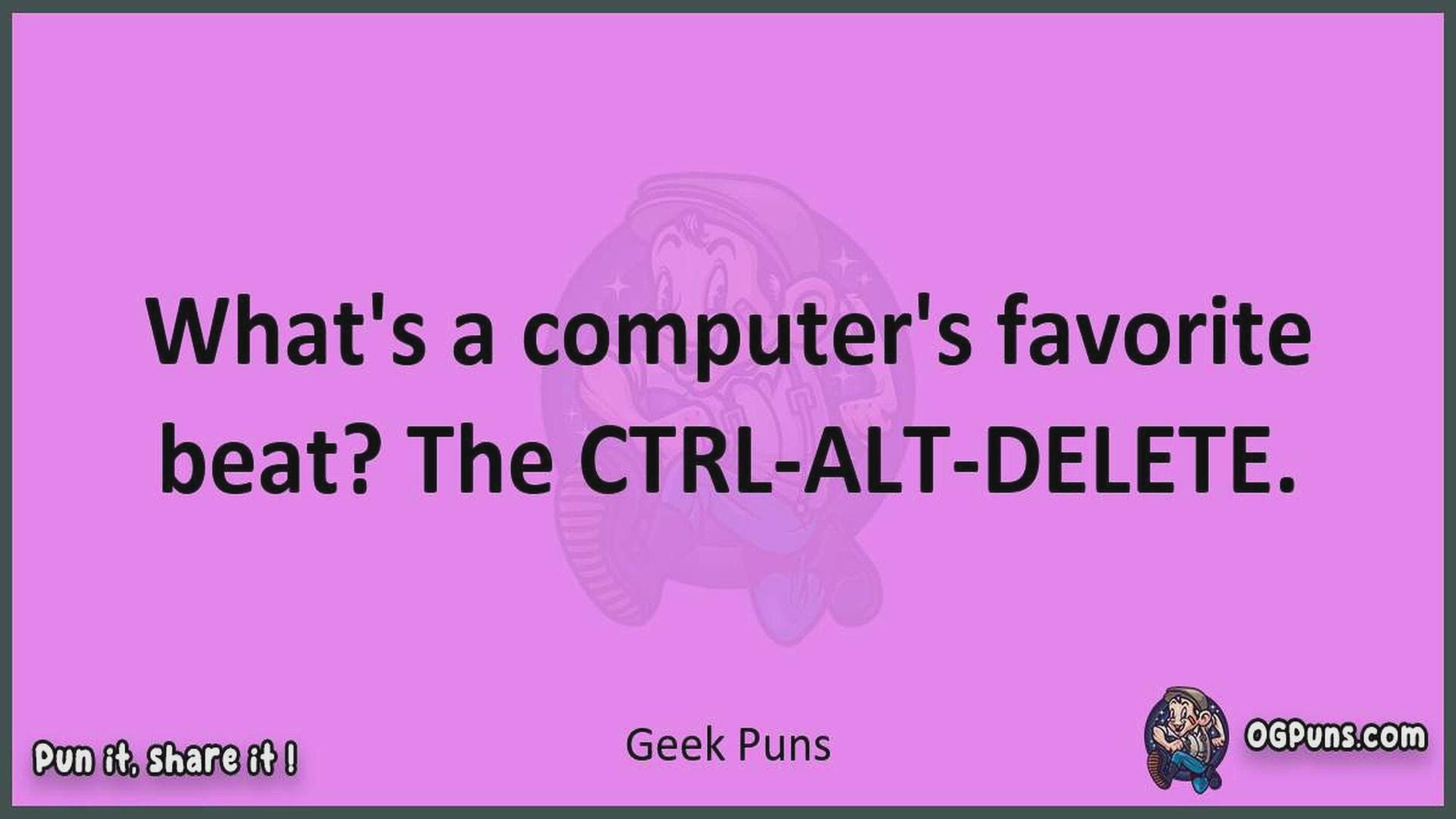 Delve into the delightful world of Geek Puns ! Here, you'll find an entertaining mix of jokes, puns, quips, and wordplay. Each piece is crafted to offer a quick escape into humor, perfect for a light-hearted moment in any day. Whether you're seeking a chuckle or a clever twist on familiar themes, this collection promises to deliver smiles and laughter. Embrace the lighter side of life with humor that's both witty and refreshing."