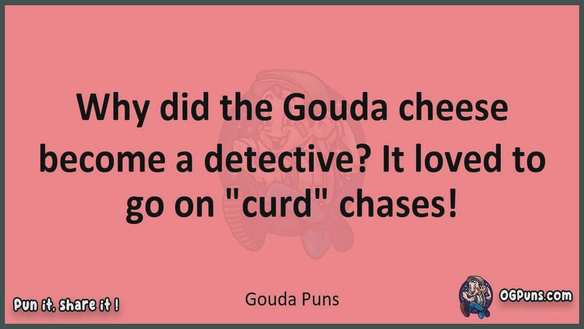Delve into the delightful world of Gouda Puns ! Here, you'll find an entertaining mix of jokes, puns, quips, and wordplay. Each piece is crafted to offer a quick escape into humor, perfect for a light-hearted moment in any day. Whether you're seeking a chuckle or a clever twist on familiar themes, this collection promises to deliver smiles and laughter. Embrace the lighter side of life with humor that's both witty and refreshing."