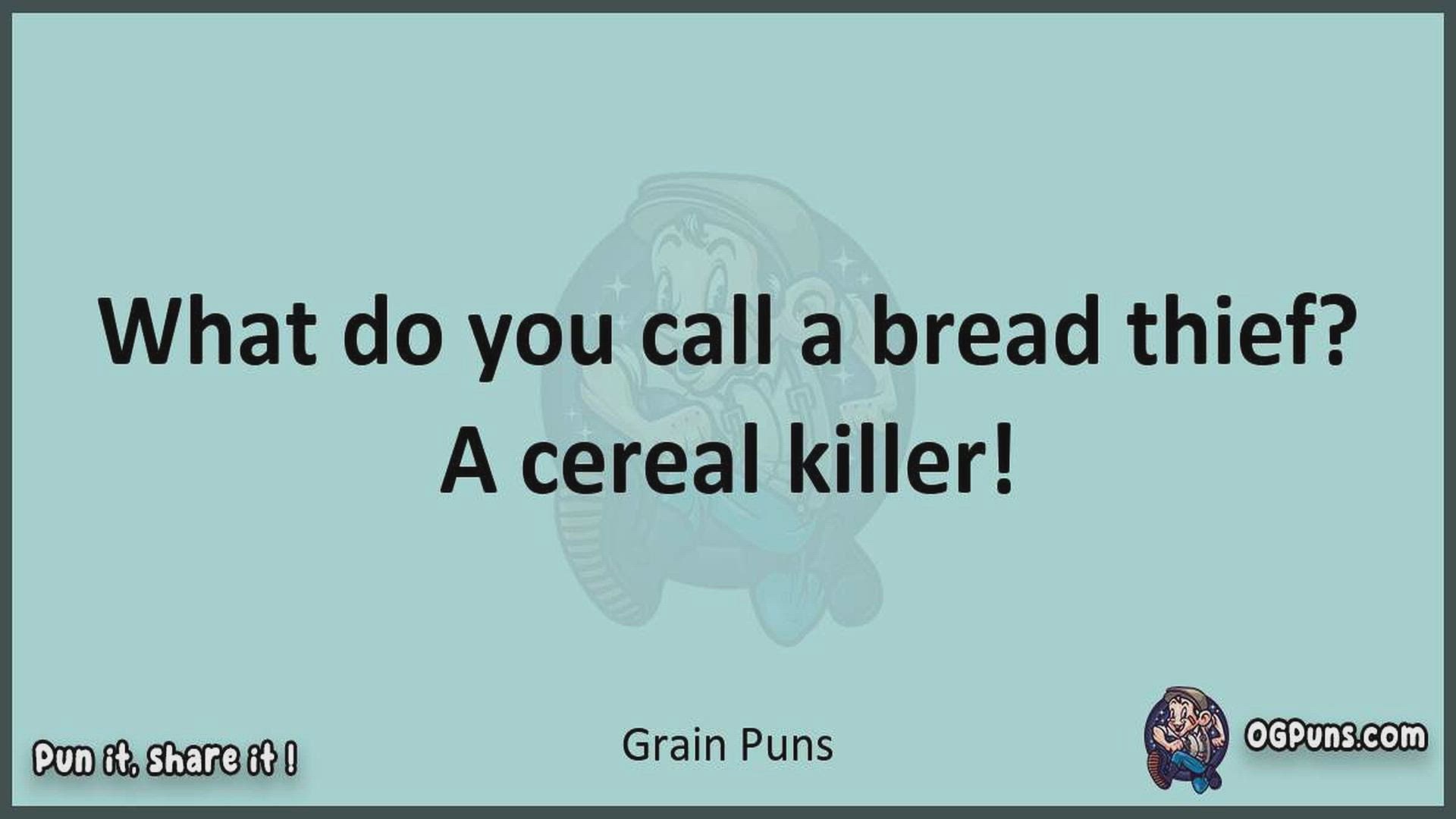 Delve into the delightful world of Grain Puns ! Here, you'll find an entertaining mix of jokes, puns, quips, and wordplay. Each piece is crafted to offer a quick escape into humor, perfect for a light-hearted moment in any day. Whether you're seeking a chuckle or a clever twist on familiar themes, this collection promises to deliver smiles and laughter. Embrace the lighter side of life with humor that's both witty and refreshing."