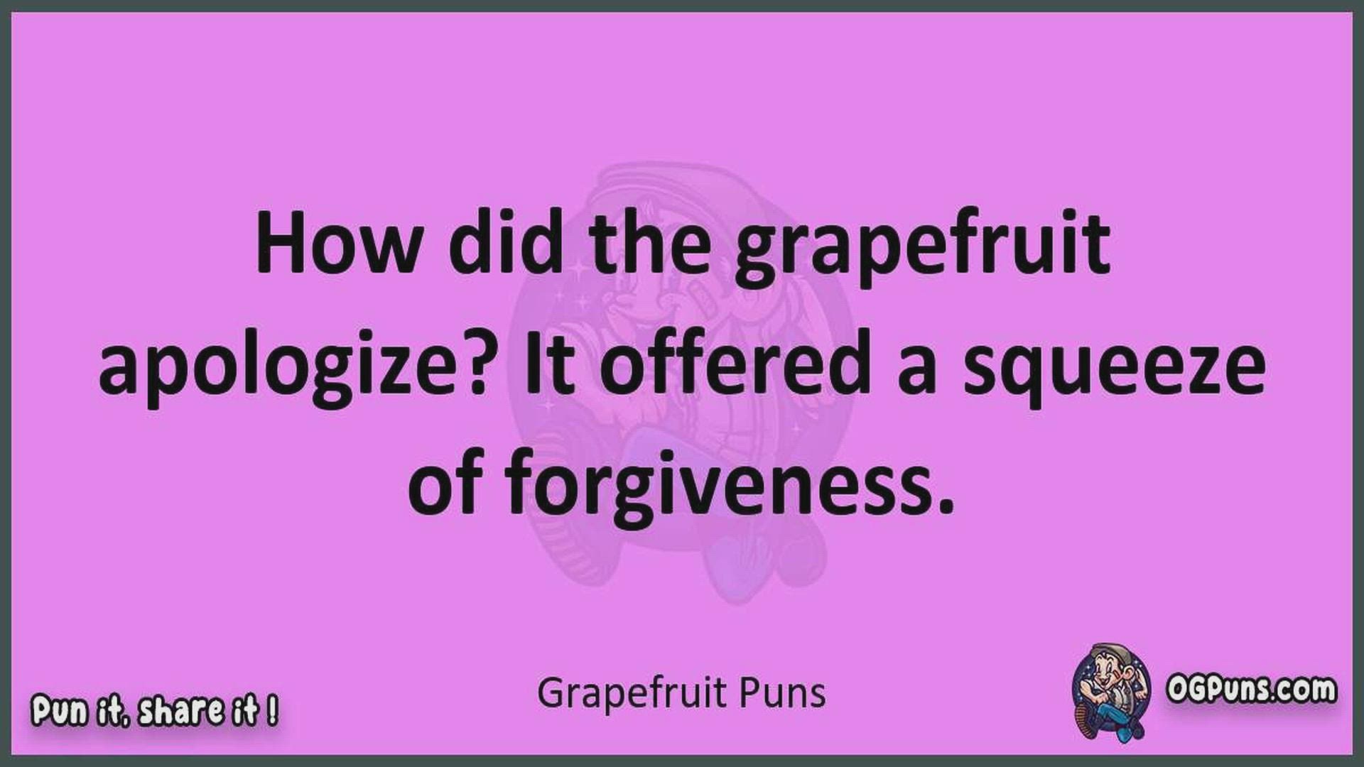 Delve into the delightful world of Grapefruit Puns ! Here, you'll find an entertaining mix of jokes, puns, quips, and wordplay. Each piece is crafted to offer a quick escape into humor, perfect for a light-hearted moment in any day. Whether you're seeking a chuckle or a clever twist on familiar themes, this collection promises to deliver smiles and laughter. Embrace the lighter side of life with humor that's both witty and refreshing."