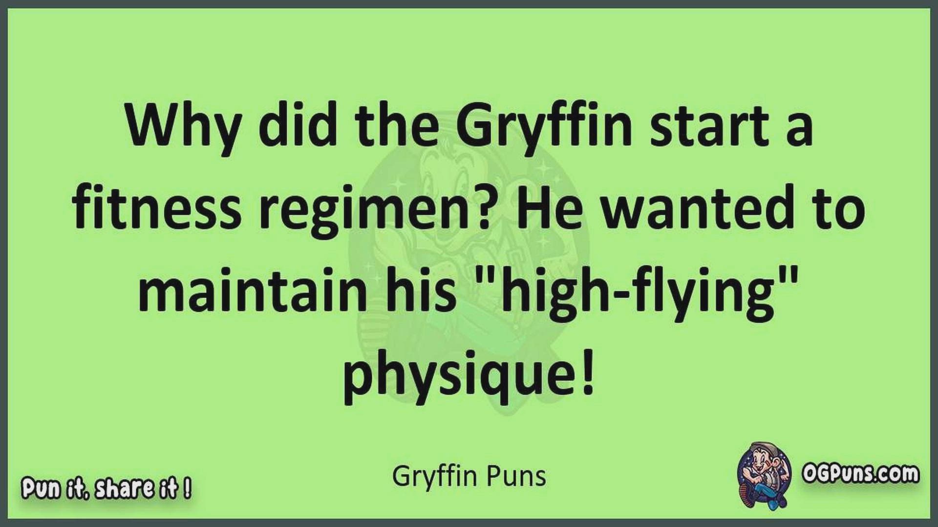 Delve into the delightful world of Gryffin Puns ! Here, you'll find an entertaining mix of jokes, puns, quips, and wordplay. Each piece is crafted to offer a quick escape into humor, perfect for a light-hearted moment in any day. Whether you're seeking a chuckle or a clever twist on familiar themes, this collection promises to deliver smiles and laughter. Embrace the lighter side of life with humor that's both witty and refreshing."