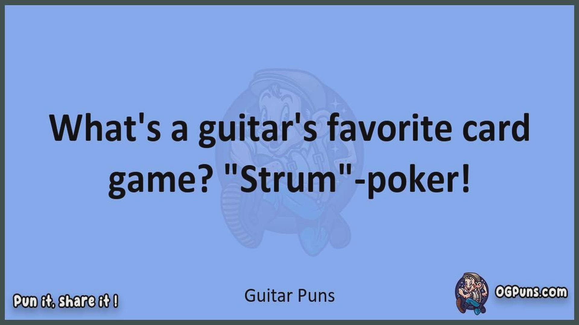 Delve into the delightful world of Guitar Puns ! Here, you'll find an entertaining mix of jokes, puns, quips, and wordplay. Each piece is crafted to offer a quick escape into humor, perfect for a light-hearted moment in any day. Whether you're seeking a chuckle or a clever twist on familiar themes, this collection promises to deliver smiles and laughter. Embrace the lighter side of life with humor that's both witty and refreshing."