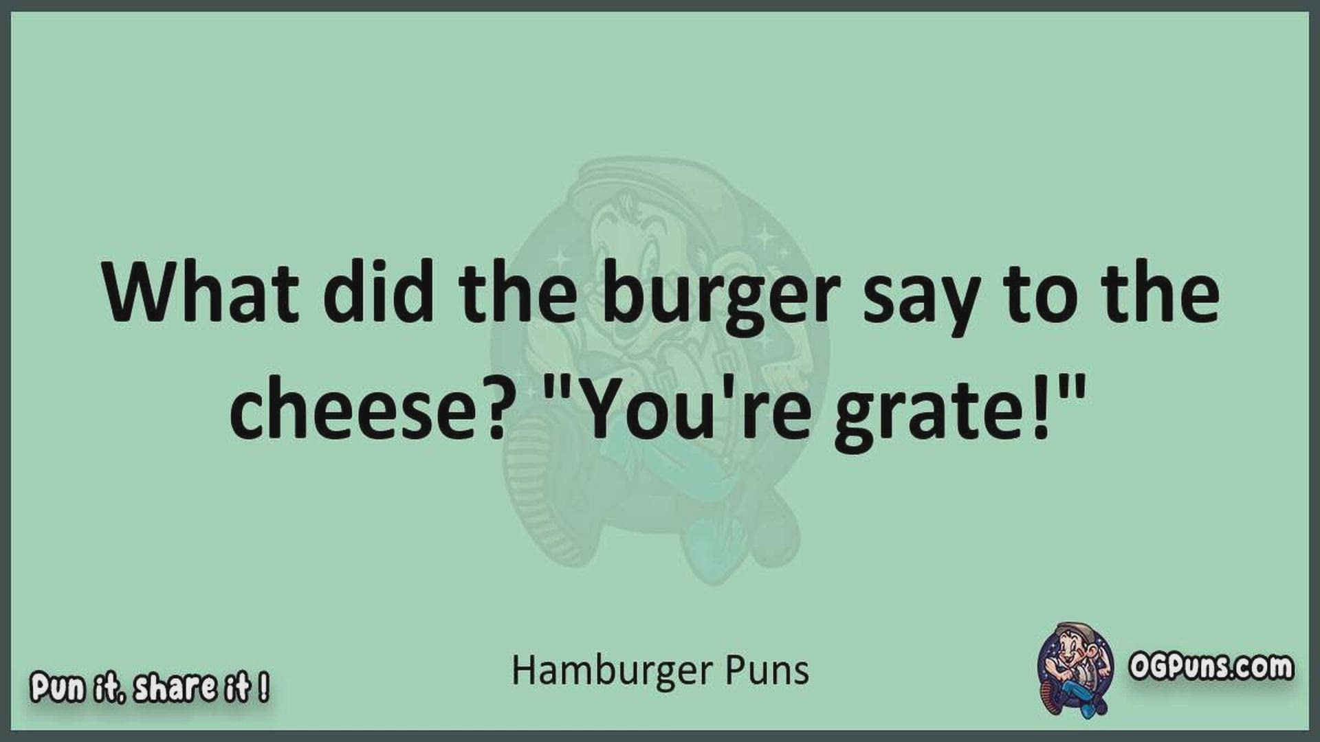 Delve into the delightful world of Hamburger Puns ! Here, you'll find an entertaining mix of jokes, puns, quips, and wordplay. Each piece is crafted to offer a quick escape into humor, perfect for a light-hearted moment in any day. Whether you're seeking a chuckle or a clever twist on familiar themes, this collection promises to deliver smiles and laughter. Embrace the lighter side of life with humor that's both witty and refreshing."