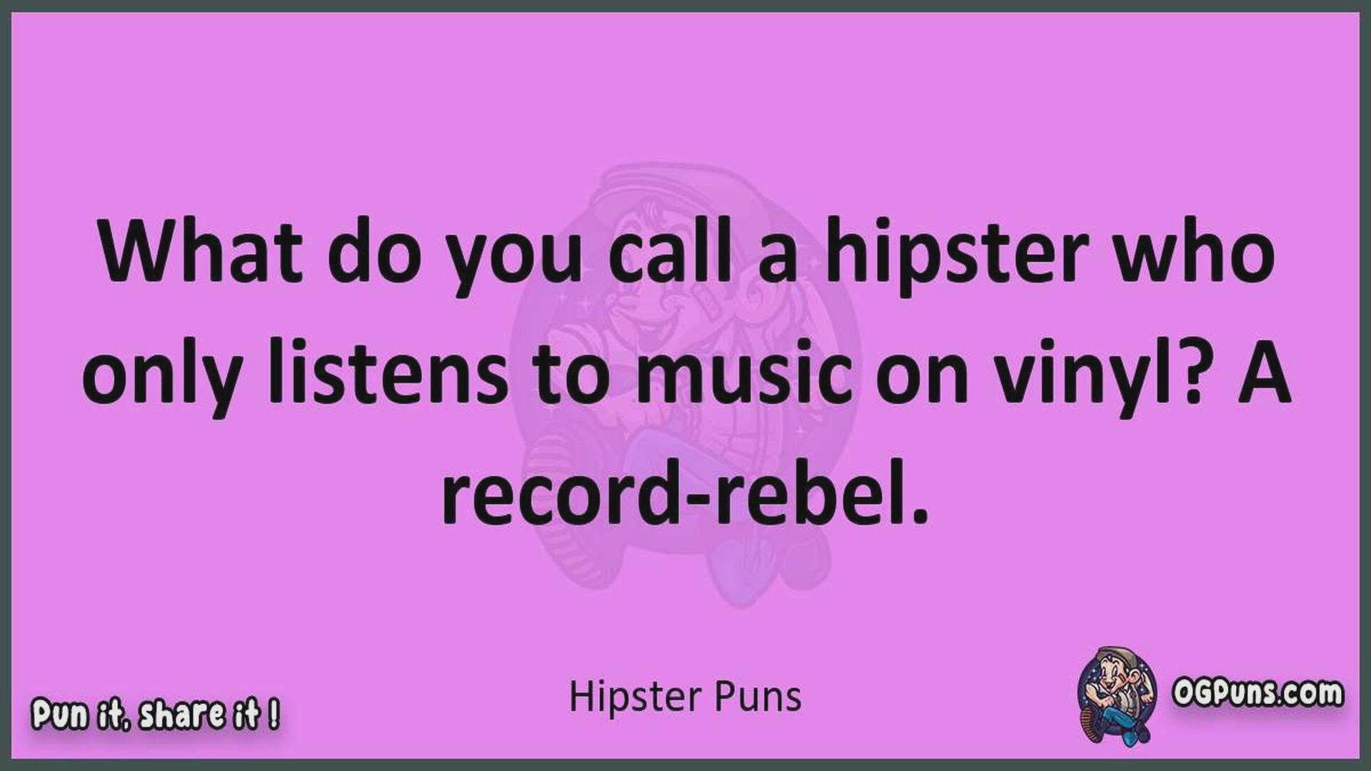 Delve into the delightful world of Hipster Puns ! Here, you'll find an entertaining mix of jokes, puns, quips, and wordplay. Each piece is crafted to offer a quick escape into humor, perfect for a light-hearted moment in any day. Whether you're seeking a chuckle or a clever twist on familiar themes, this collection promises to deliver smiles and laughter. Embrace the lighter side of life with humor that's both witty and refreshing."