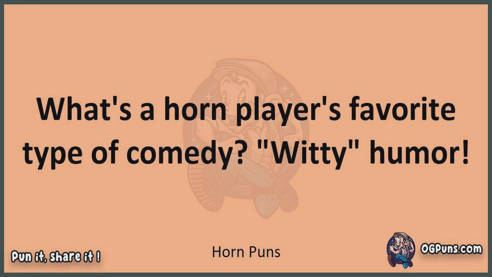 Delve into the delightful world of Horn Puns ! Here, you'll find an entertaining mix of jokes, puns, quips, and wordplay. Each piece is crafted to offer a quick escape into humor, perfect for a light-hearted moment in any day. Whether you're seeking a chuckle or a clever twist on familiar themes, this collection promises to deliver smiles and laughter. Embrace the lighter side of life with humor that's both witty and refreshing."