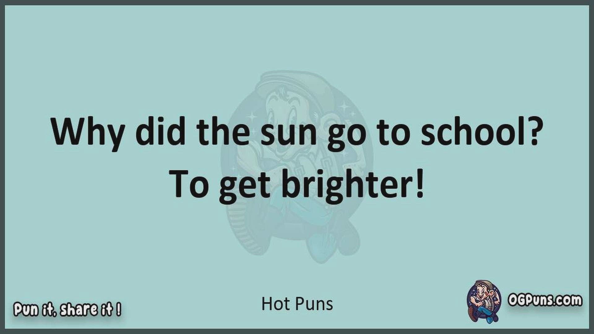 Delve into the delightful world of Hot Puns ! Here, you'll find an entertaining mix of jokes, puns, quips, and wordplay. Each piece is crafted to offer a quick escape into humor, perfect for a light-hearted moment in any day. Whether you're seeking a chuckle or a clever twist on familiar themes, this collection promises to deliver smiles and laughter. Embrace the lighter side of life with humor that's both witty and refreshing."