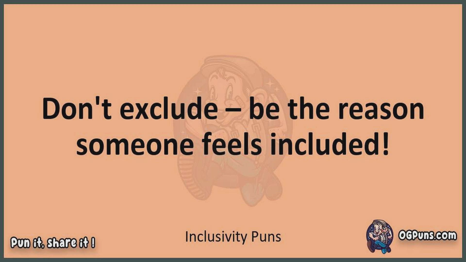 Delve into the delightful world of Inclusivity Puns ! Here, you'll find an entertaining mix of jokes, puns, quips, and wordplay. Each piece is crafted to offer a quick escape into humor, perfect for a light-hearted moment in any day. Whether you're seeking a chuckle or a clever twist on familiar themes, this collection promises to deliver smiles and laughter. Embrace the lighter side of life with humor that's both witty and refreshing."