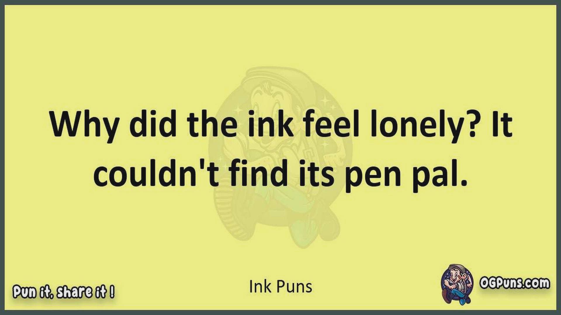 Delve into the delightful world of Ink Puns ! Here, you'll find an entertaining mix of jokes, puns, quips, and wordplay. Each piece is crafted to offer a quick escape into humor, perfect for a light-hearted moment in any day. Whether you're seeking a chuckle or a clever twist on familiar themes, this collection promises to deliver smiles and laughter. Embrace the lighter side of life with humor that's both witty and refreshing."