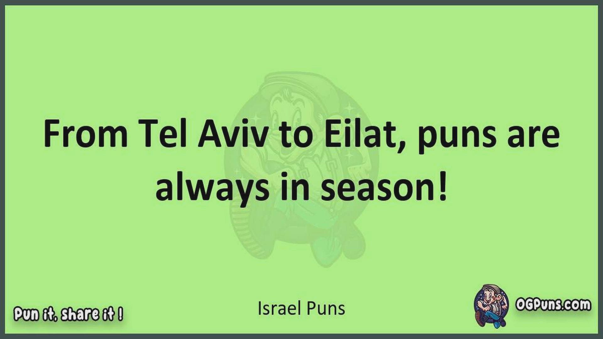 Delve into the delightful world of Israel Puns ! Here, you'll find an entertaining mix of jokes, puns, quips, and wordplay. Each piece is crafted to offer a quick escape into humor, perfect for a light-hearted moment in any day. Whether you're seeking a chuckle or a clever twist on familiar themes, this collection promises to deliver smiles and laughter. Embrace the lighter side of life with humor that's both witty and refreshing."