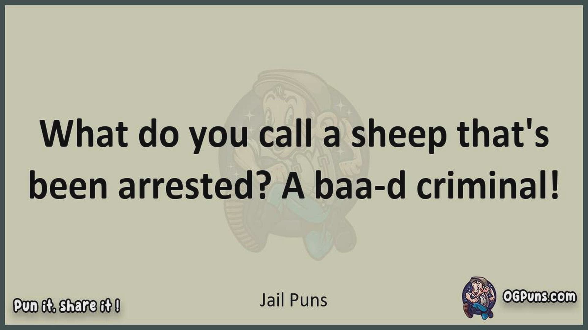 Delve into the delightful world of Jail Puns ! Here, you'll find an entertaining mix of jokes, puns, quips, and wordplay. Each piece is crafted to offer a quick escape into humor, perfect for a light-hearted moment in any day. Whether you're seeking a chuckle or a clever twist on familiar themes, this collection promises to deliver smiles and laughter. Embrace the lighter side of life with humor that's both witty and refreshing."