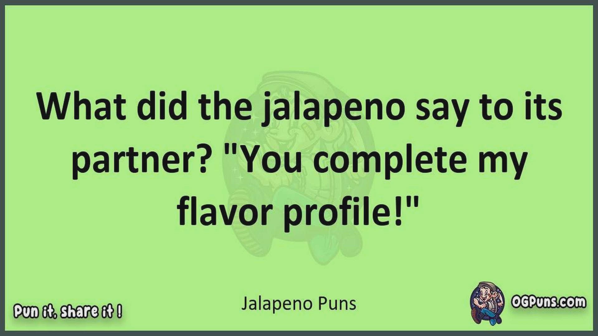 Delve into the delightful world of Jalapeno Puns ! Here, you'll find an entertaining mix of jokes, puns, quips, and wordplay. Each piece is crafted to offer a quick escape into humor, perfect for a light-hearted moment in any day. Whether you're seeking a chuckle or a clever twist on familiar themes, this collection promises to deliver smiles and laughter. Embrace the lighter side of life with humor that's both witty and refreshing."