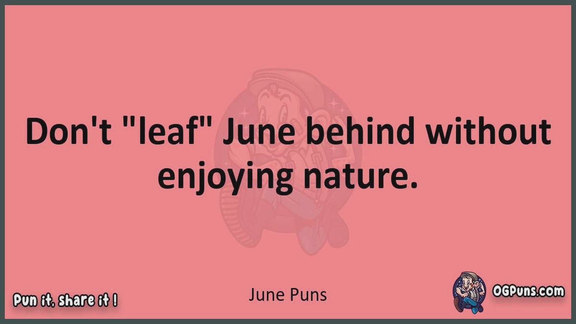 Delve into the delightful world of June Puns ! Here, you'll find an entertaining mix of jokes, puns, quips, and wordplay. Each piece is crafted to offer a quick escape into humor, perfect for a light-hearted moment in any day. Whether you're seeking a chuckle or a clever twist on familiar themes, this collection promises to deliver smiles and laughter. Embrace the lighter side of life with humor that's both witty and refreshing."