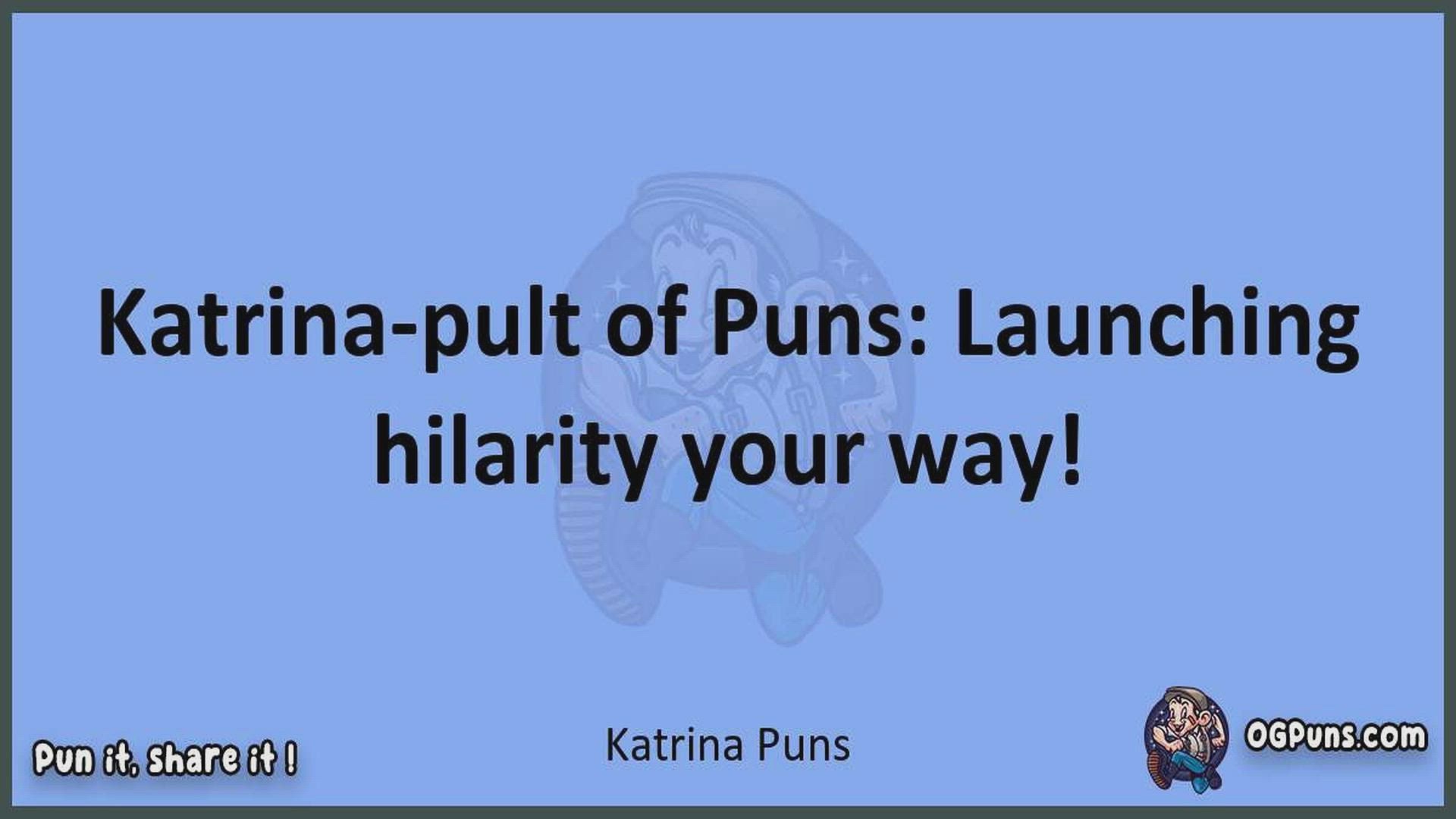 Delve into the delightful world of Katrina Puns ! Here, you'll find an entertaining mix of jokes, puns, quips, and wordplay. Each piece is crafted to offer a quick escape into humor, perfect for a light-hearted moment in any day. Whether you're seeking a chuckle or a clever twist on familiar themes, this collection promises to deliver smiles and laughter. Embrace the lighter side of life with humor that's both witty and refreshing."