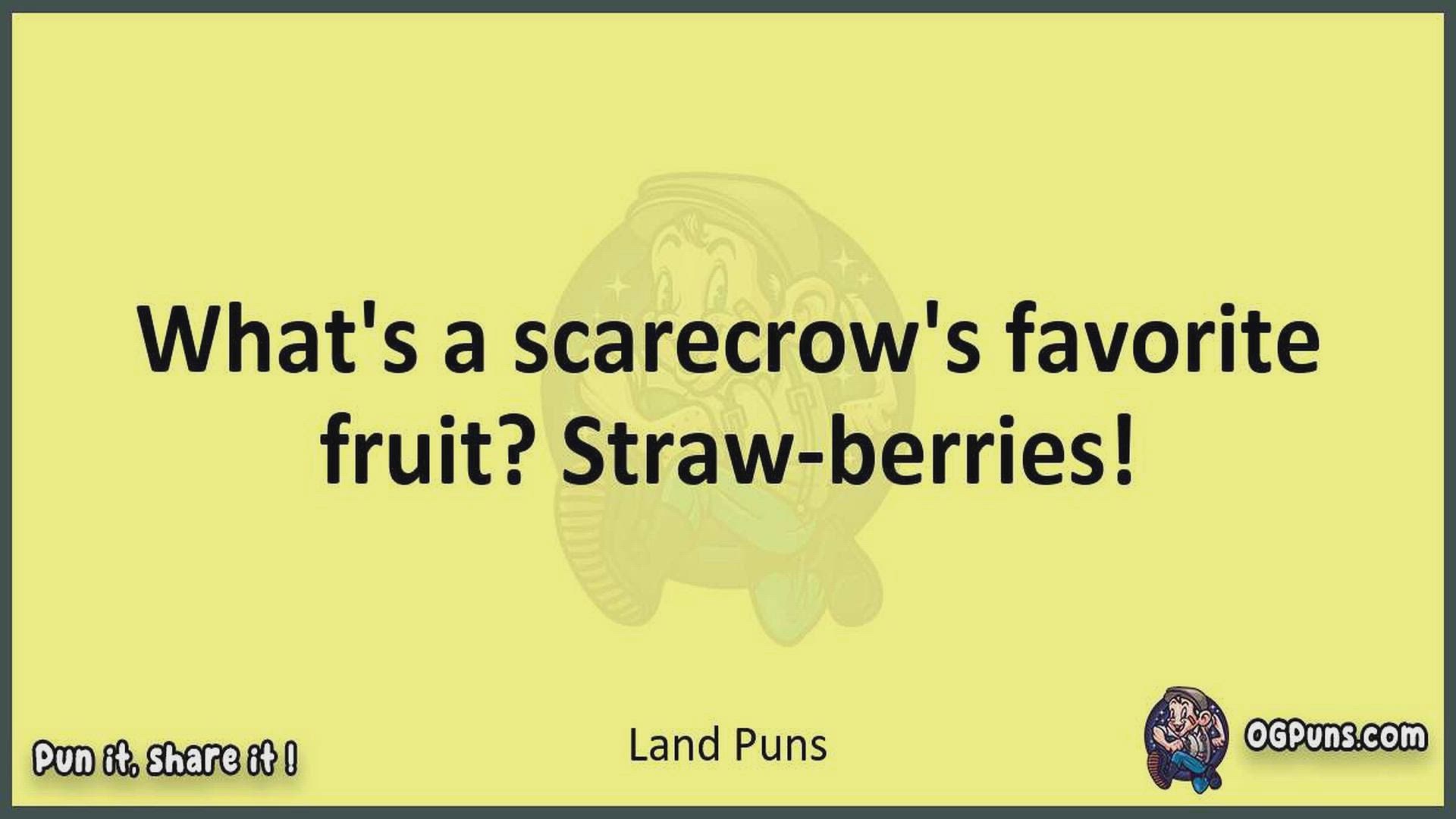 Delve into the delightful world of Land Puns ! Here, you'll find an entertaining mix of jokes, puns, quips, and wordplay. Each piece is crafted to offer a quick escape into humor, perfect for a light-hearted moment in any day. Whether you're seeking a chuckle or a clever twist on familiar themes, this collection promises to deliver smiles and laughter. Embrace the lighter side of life with humor that's both witty and refreshing."