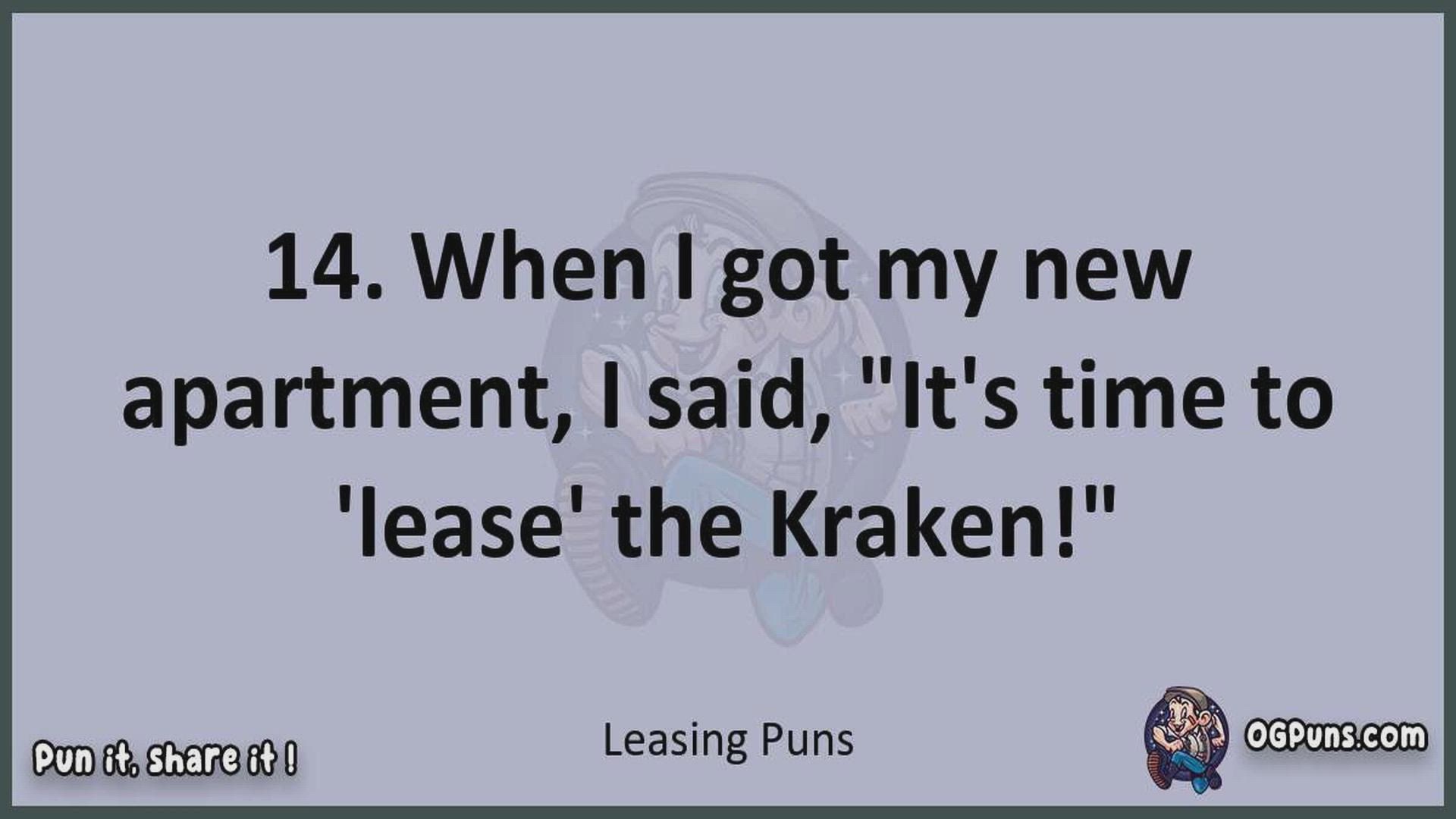Delve into the delightful world of Leasing Puns ! Here, you'll find an entertaining mix of jokes, puns, quips, and wordplay. Each piece is crafted to offer a quick escape into humor, perfect for a light-hearted moment in any day. Whether you're seeking a chuckle or a clever twist on familiar themes, this collection promises to deliver smiles and laughter. Embrace the lighter side of life with humor that's both witty and refreshing."