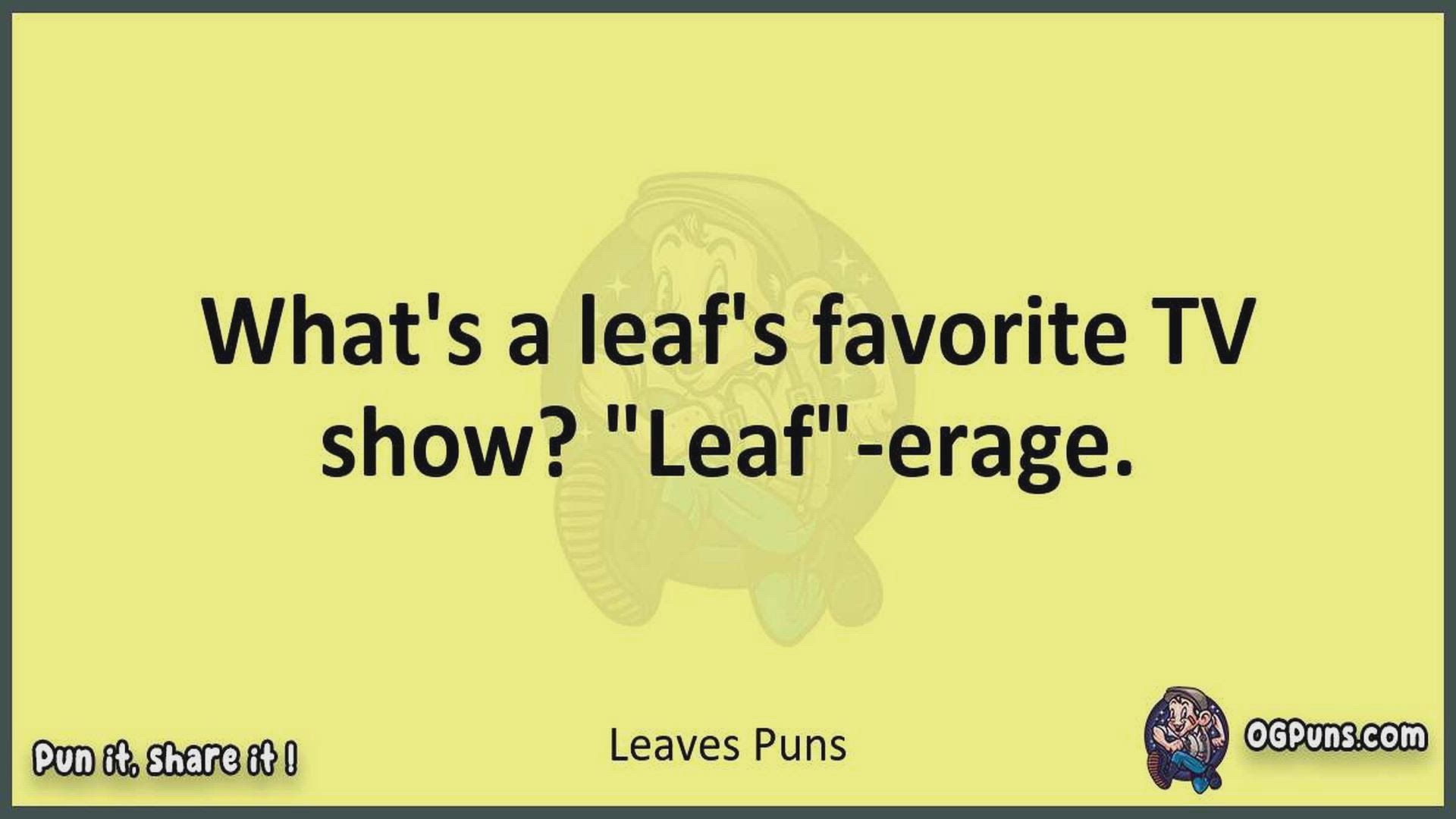 Delve into the delightful world of Leaves Puns ! Here, you'll find an entertaining mix of jokes, puns, quips, and wordplay. Each piece is crafted to offer a quick escape into humor, perfect for a light-hearted moment in any day. Whether you're seeking a chuckle or a clever twist on familiar themes, this collection promises to deliver smiles and laughter. Embrace the lighter side of life with humor that's both witty and refreshing."