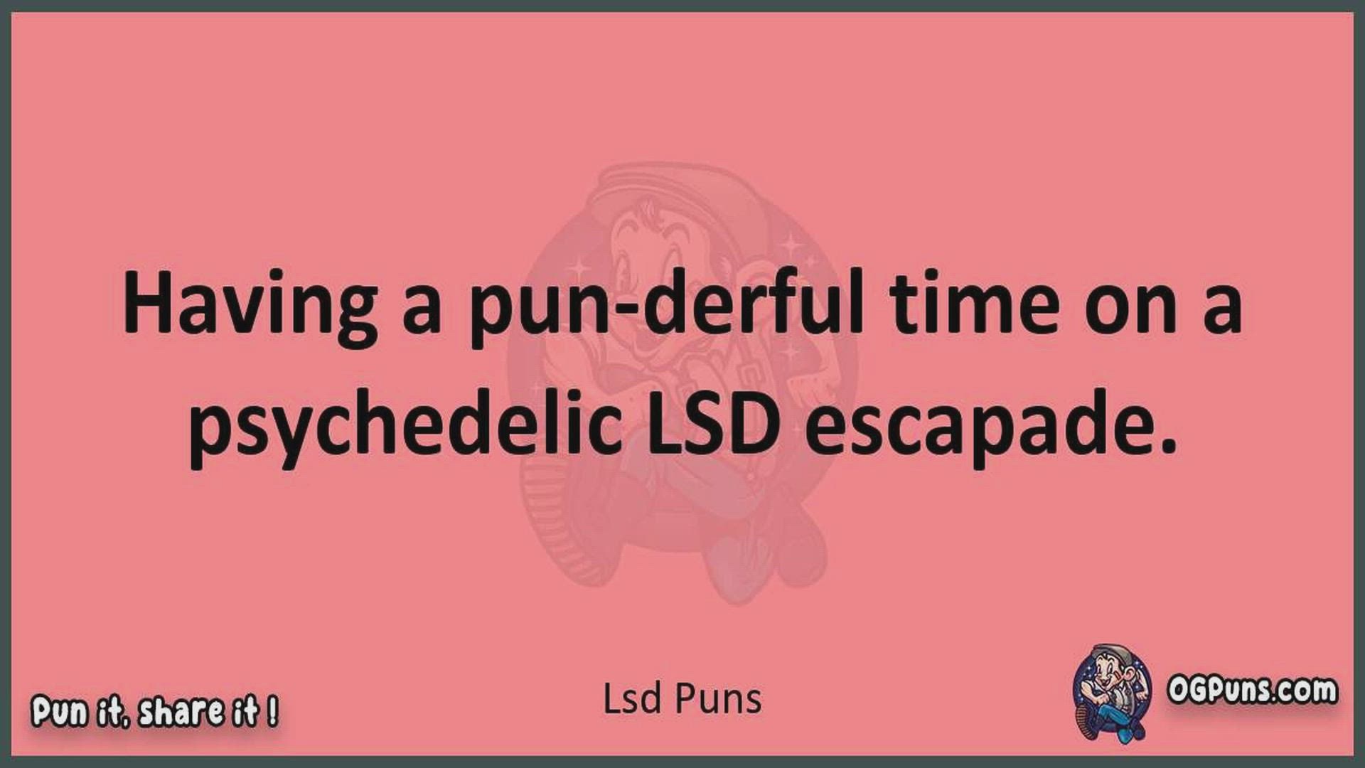 Delve into the delightful world of Lsd Puns ! Here, you'll find an entertaining mix of jokes, puns, quips, and wordplay. Each piece is crafted to offer a quick escape into humor, perfect for a light-hearted moment in any day. Whether you're seeking a chuckle or a clever twist on familiar themes, this collection promises to deliver smiles and laughter. Embrace the lighter side of life with humor that's both witty and refreshing."