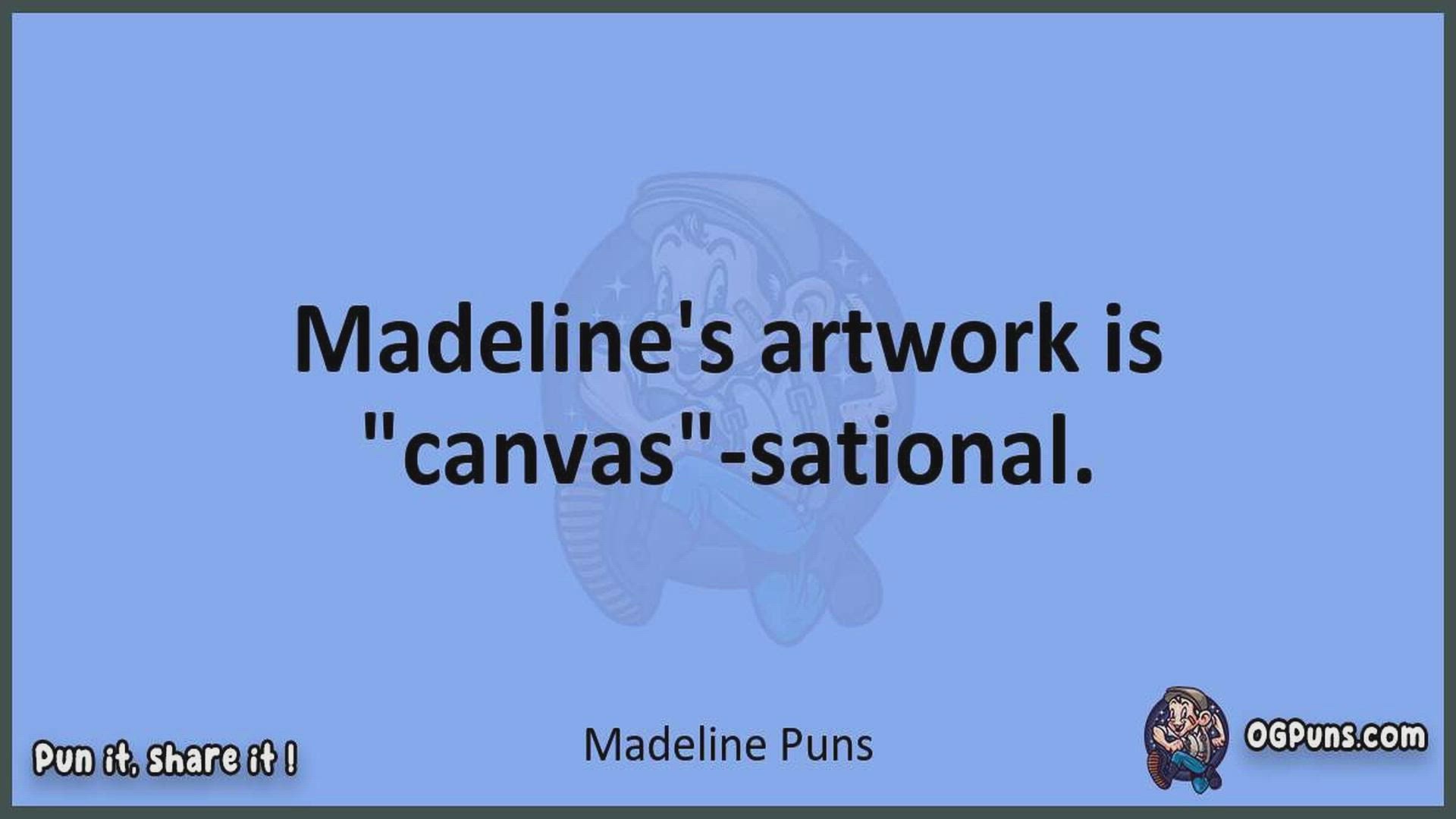 Delve into the delightful world of Madeline Puns ! Here, you'll find an entertaining mix of jokes, puns, quips, and wordplay. Each piece is crafted to offer a quick escape into humor, perfect for a light-hearted moment in any day. Whether you're seeking a chuckle or a clever twist on familiar themes, this collection promises to deliver smiles and laughter. Embrace the lighter side of life with humor that's both witty and refreshing."