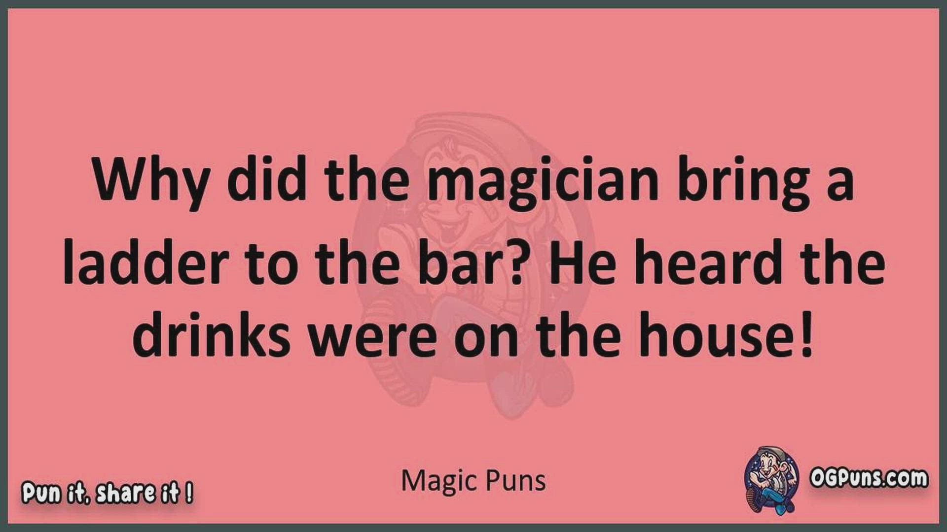 Delve into the delightful world of Magic Puns ! Here, you'll find an entertaining mix of jokes, puns, quips, and wordplay. Each piece is crafted to offer a quick escape into humor, perfect for a light-hearted moment in any day. Whether you're seeking a chuckle or a clever twist on familiar themes, this collection promises to deliver smiles and laughter. Embrace the lighter side of life with humor that's both witty and refreshing."